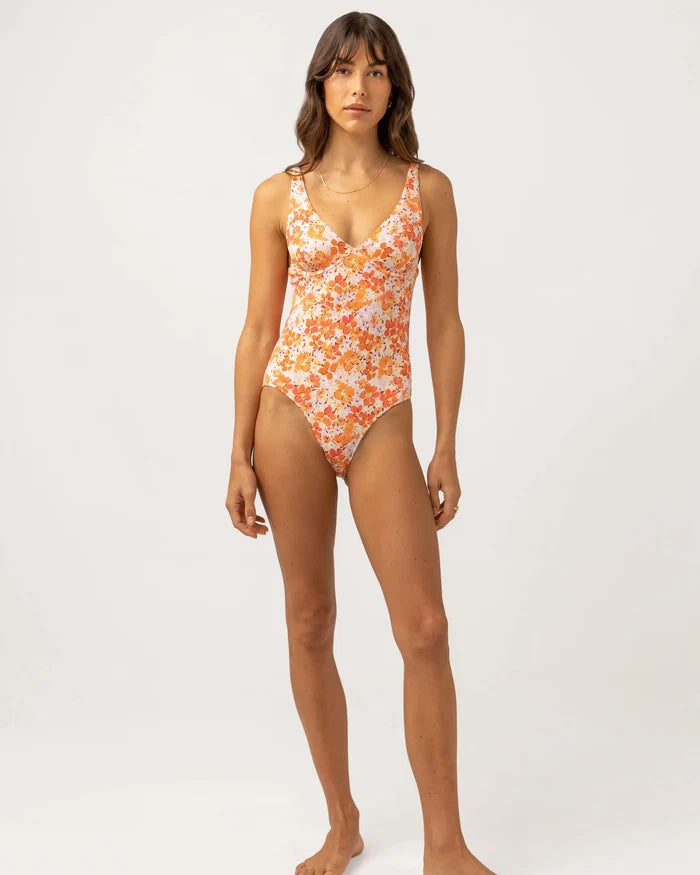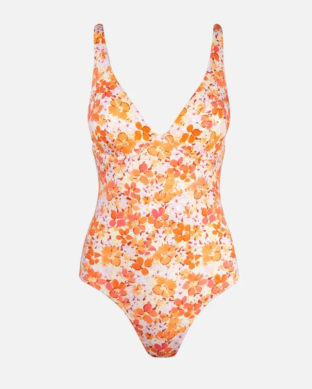 Blommig baddräkt från Rhythm i återvunnen polyamide.