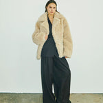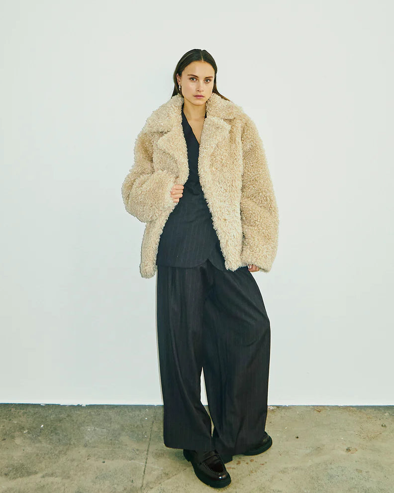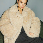 The Bang jacket från Norr,  en perfekt blanding av värme och stil, tillverkad med fluffig teddy polyester och jackan har en oversized passform.