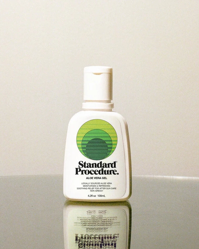 Aloe Vera Gel 125ML från Australienska Standard Procedure, stryks på efter långa dagar i solen och ger en svalkande och återfuktande känsla.
