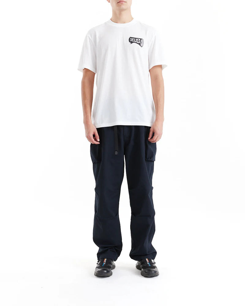 Log Tee från Deus har ett surfinspirerat tryck fram och baktill och har en boxy fit.