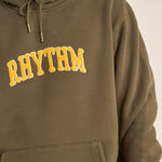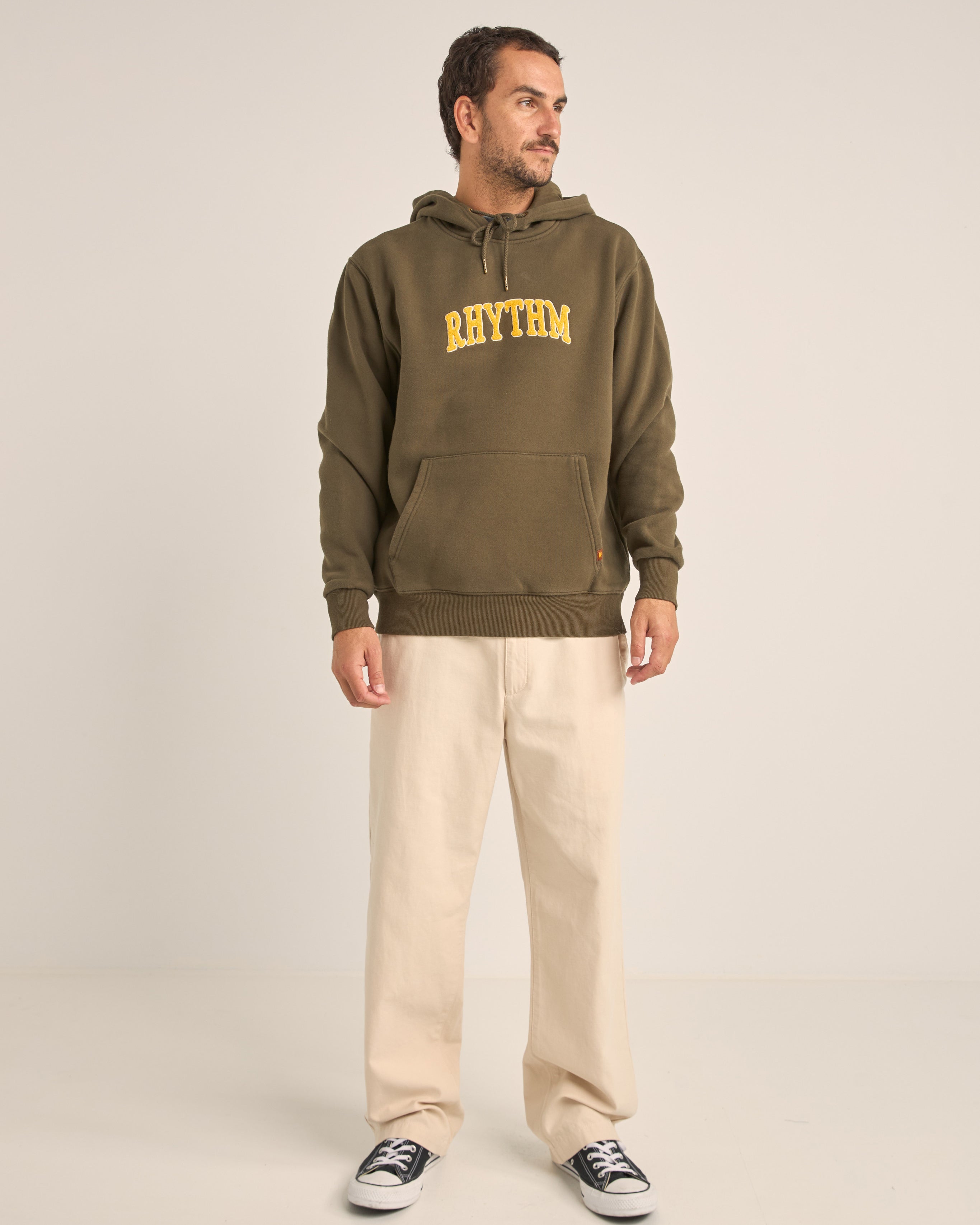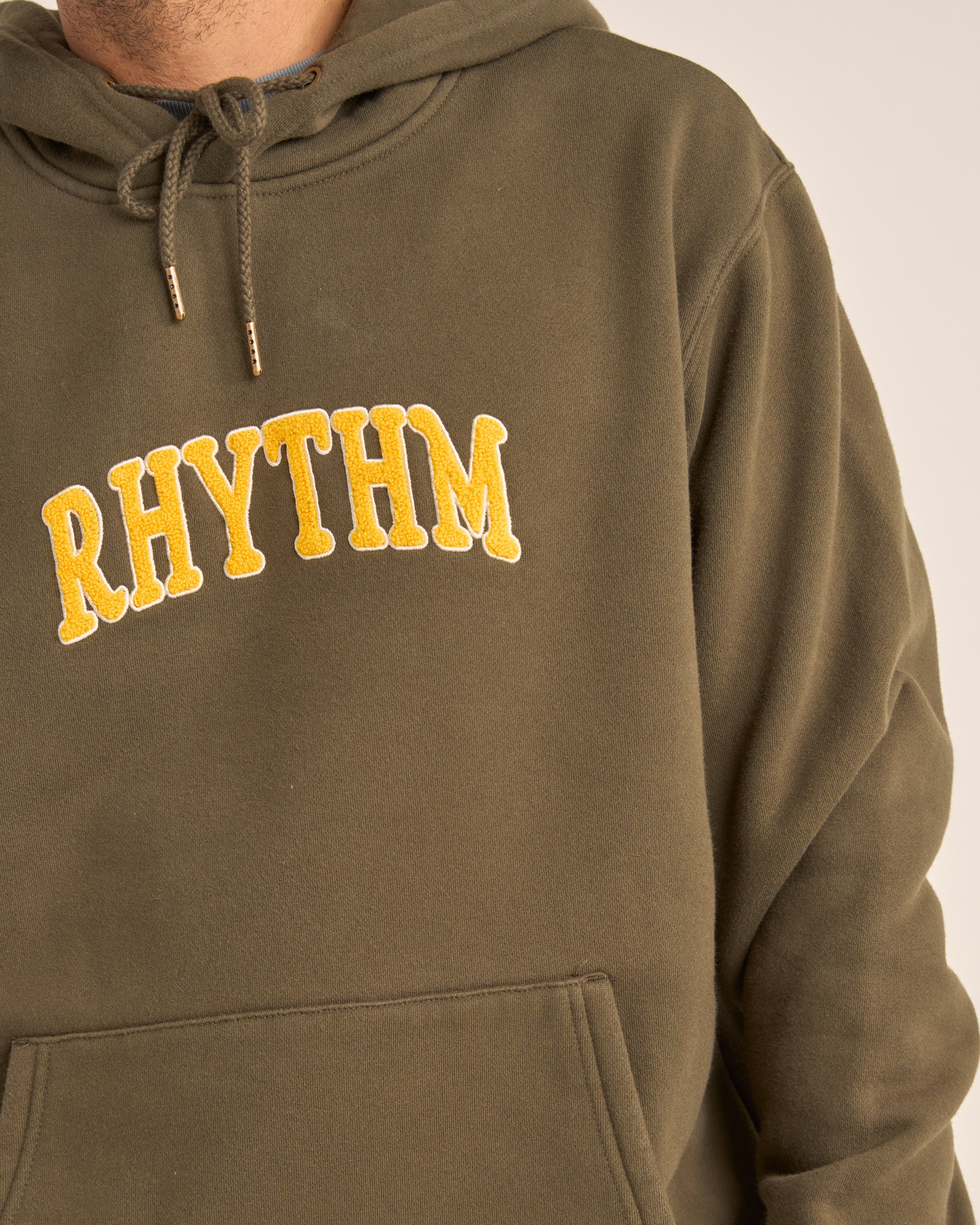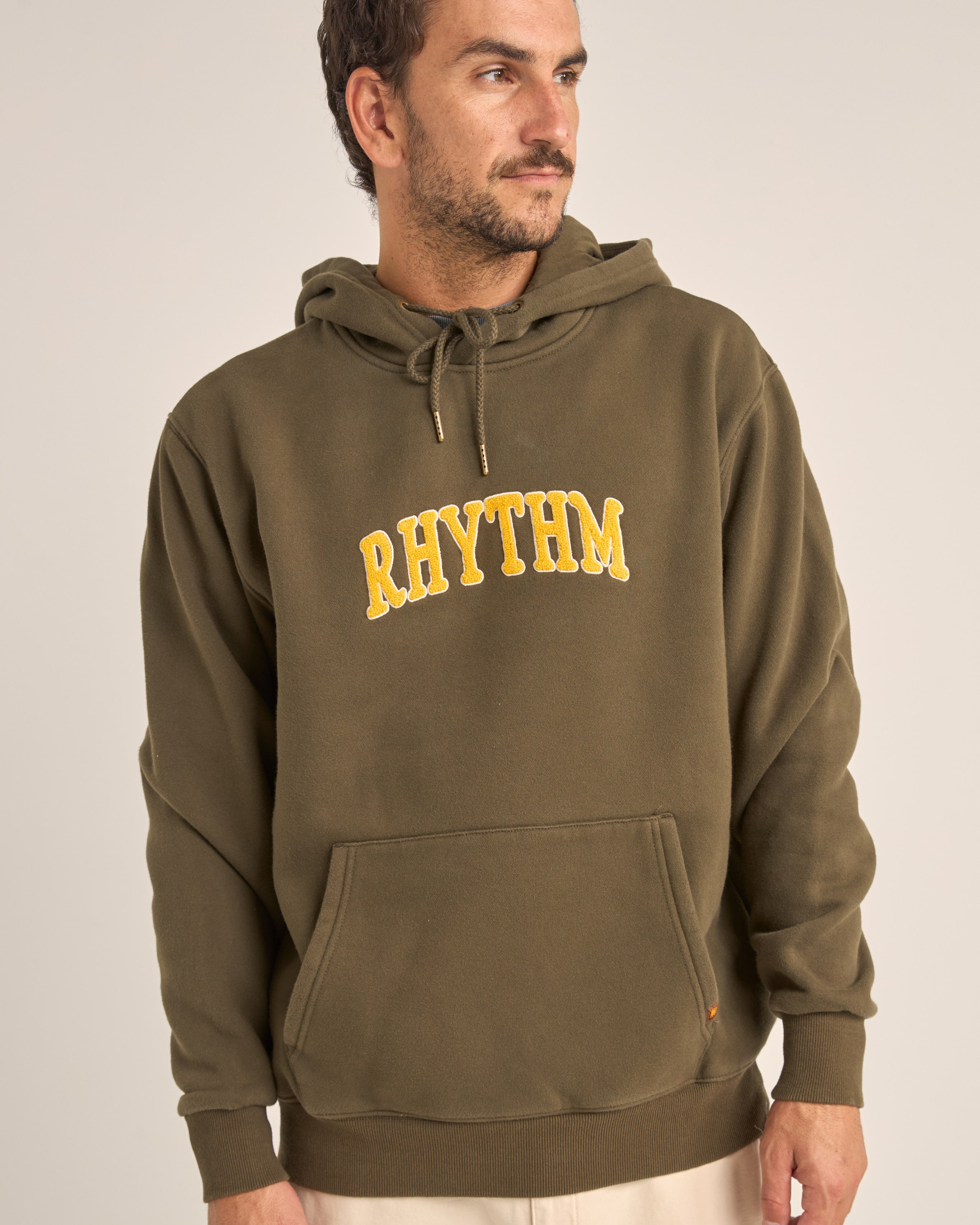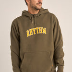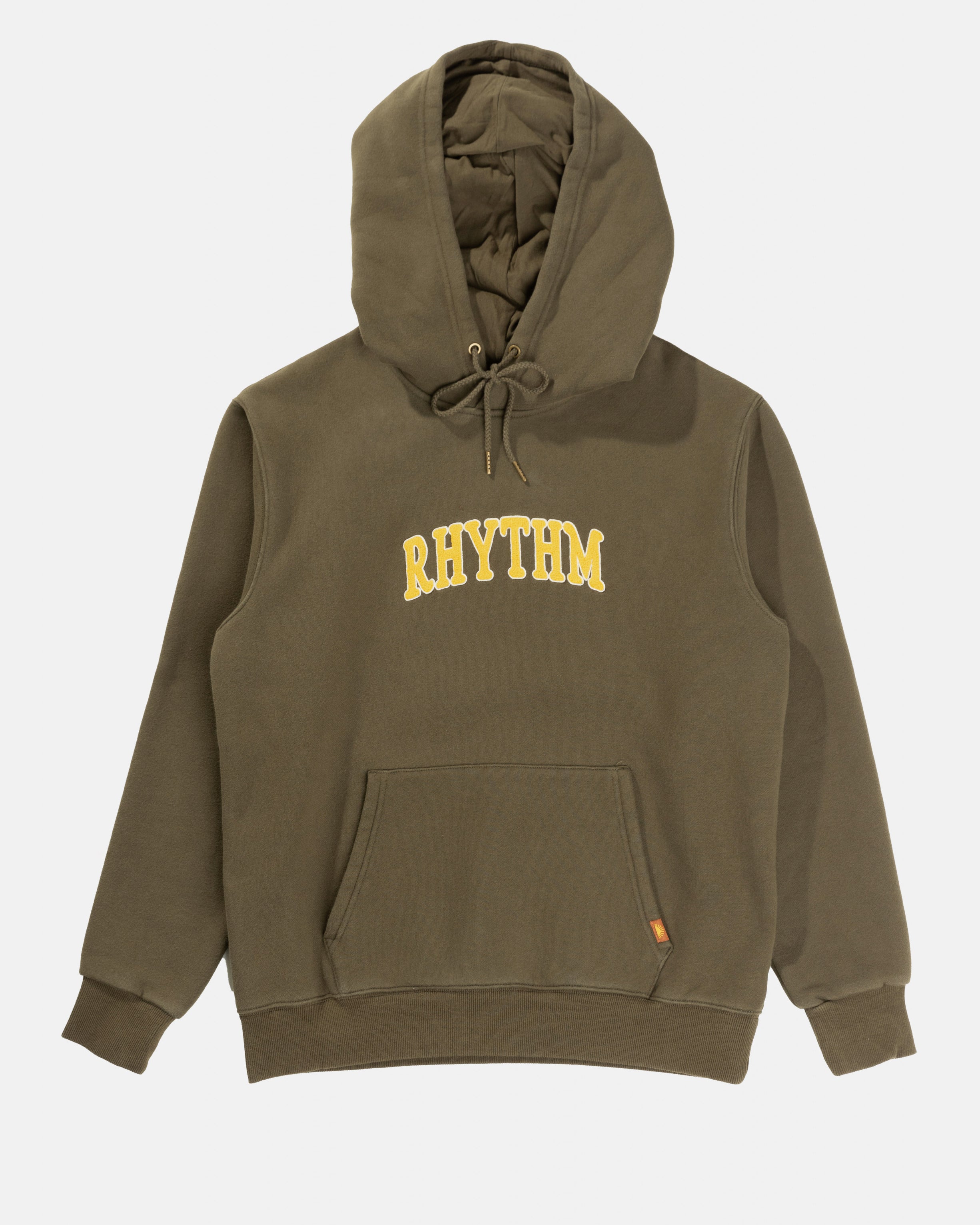 Arch Heavyweight Fleece Hood från Australiensiska Rhythm, tillverkad i i bomull och polyester och har en skön borstad fleece insida, pryds med tryck framtill.