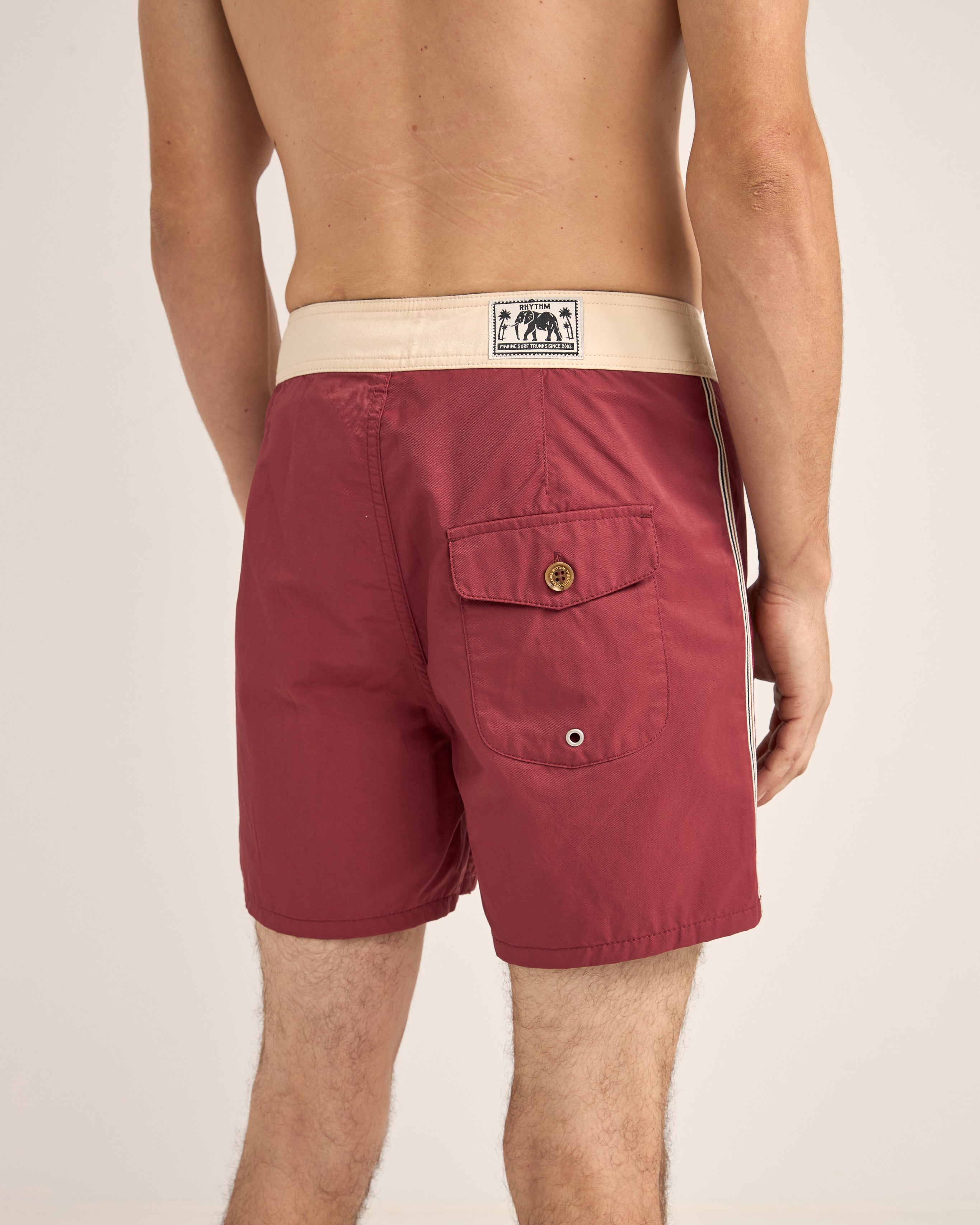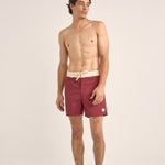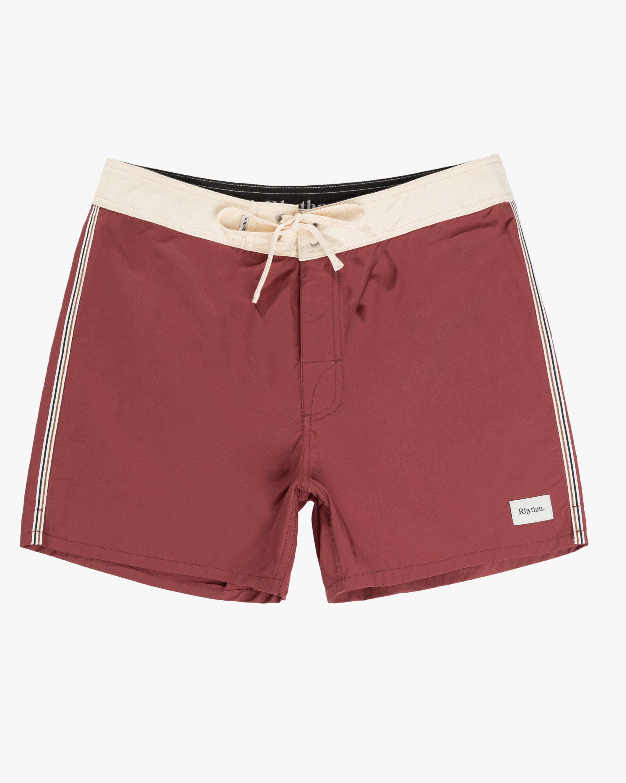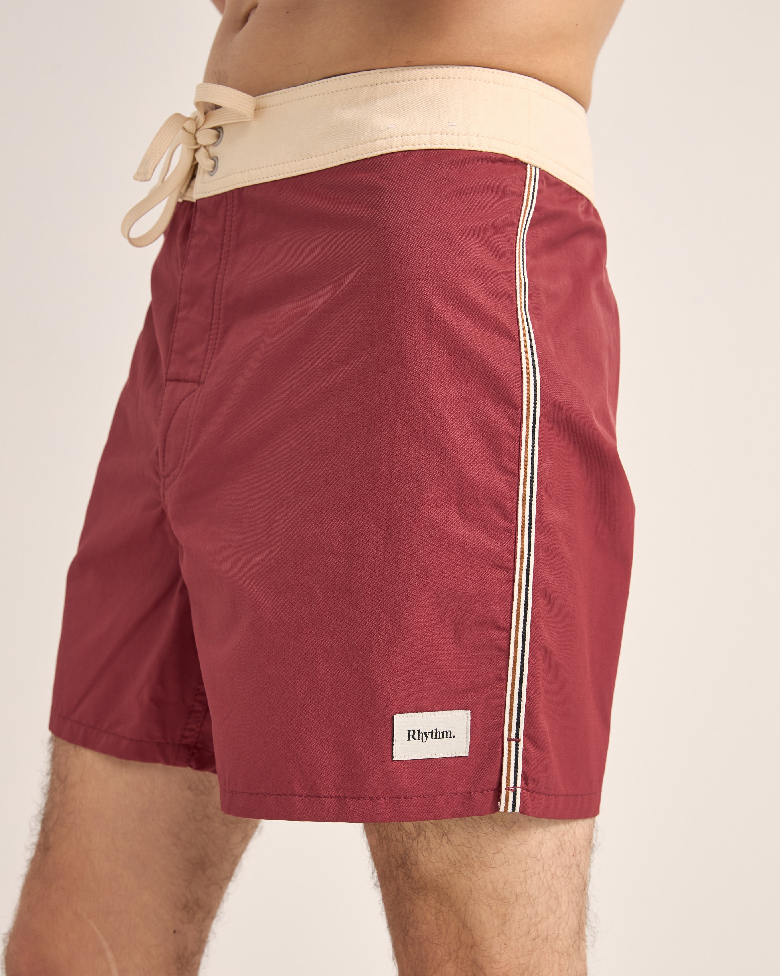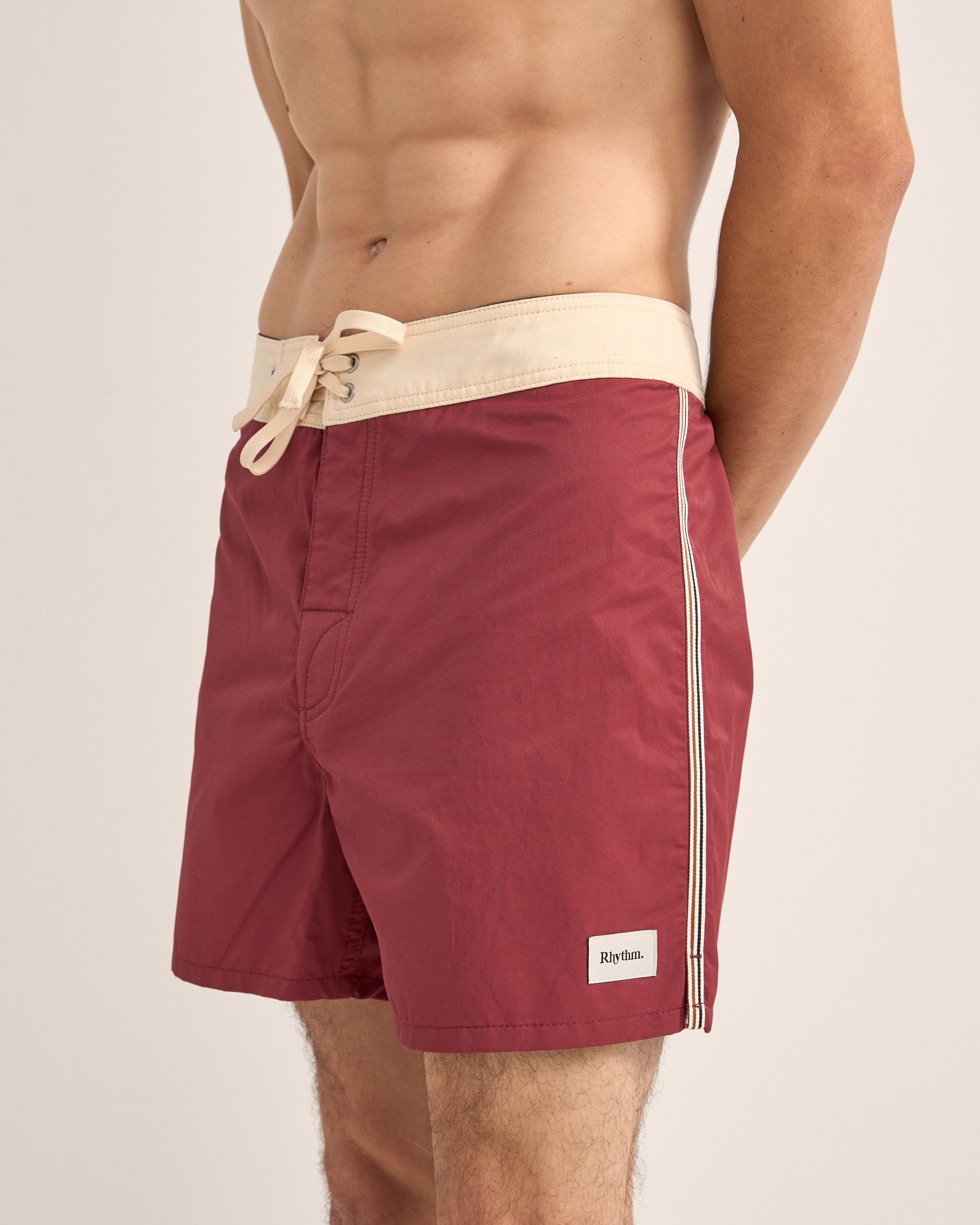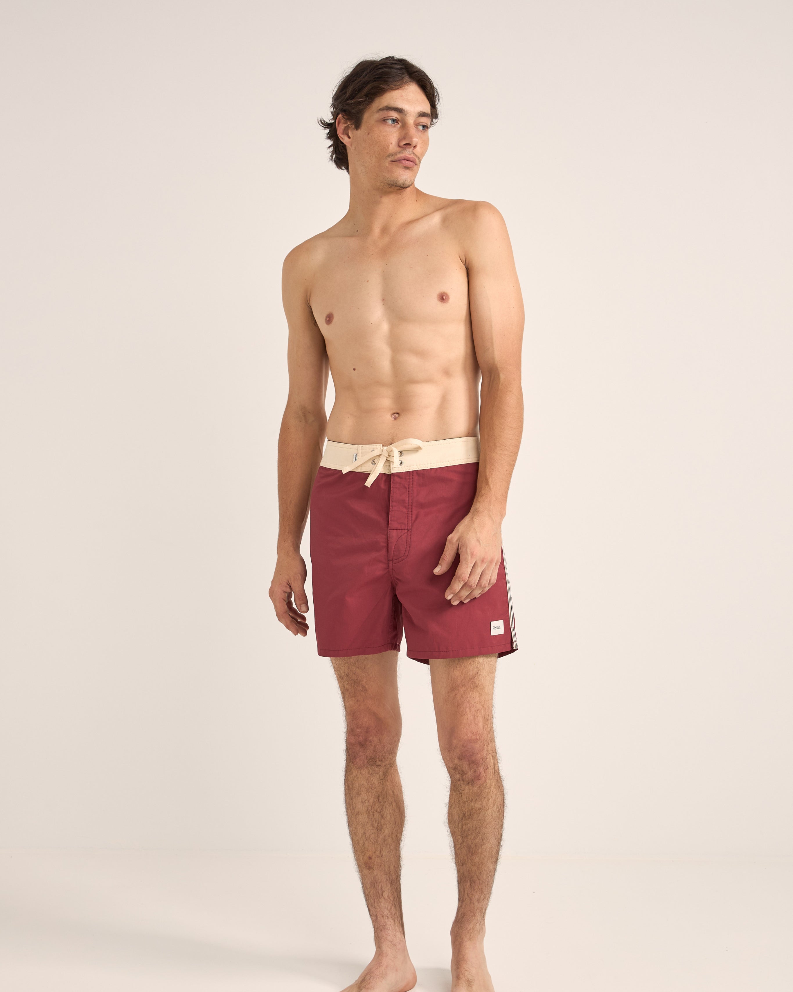 Heritage Trunk från Rhythm är ett par oldschool surfinspirerade badbyxor, tillverkade i nylon och bomull, pryds med kontrast färg i midja samt revär på sidan, knyts i midja.