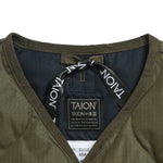 Military Zip V-Neck Down Vest från Japanska Taion är en varm och tålig väst med ett ytterskal i ripstop och är fodrad med dun.