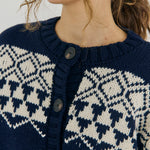 Fair Knit Cardigan från Norr är en klassisk stickad tröja med ett tidlöst mönster, tillverkad i en blanding av bomull och acrylic.