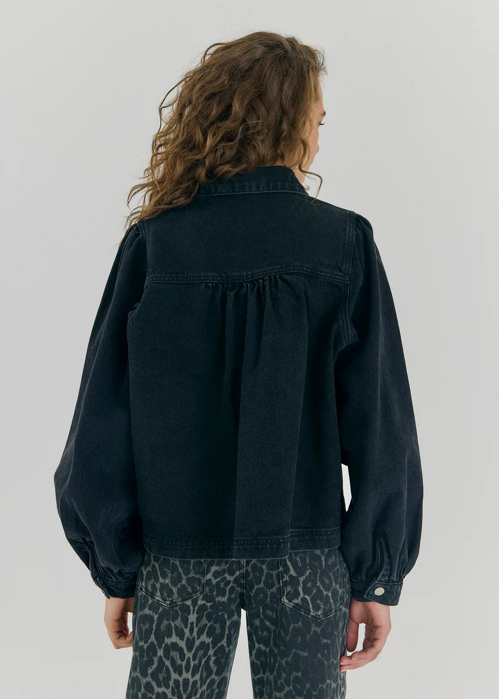 Ninni denim shirt från Norr är en stilren jeansskjorta med voluminösa ärmar och kommer i en tvättad svart kulör.