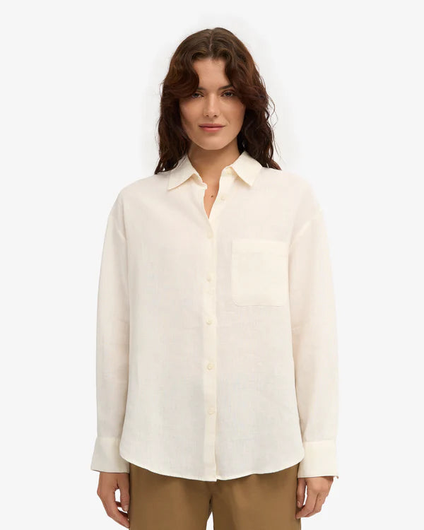 Organic Linen Oversized Shirt - Ivory White