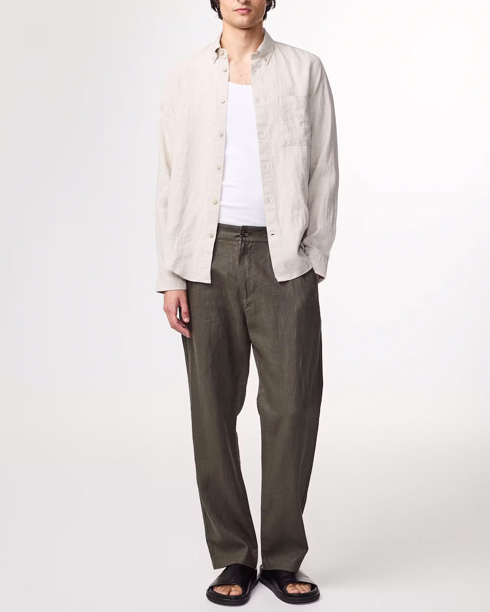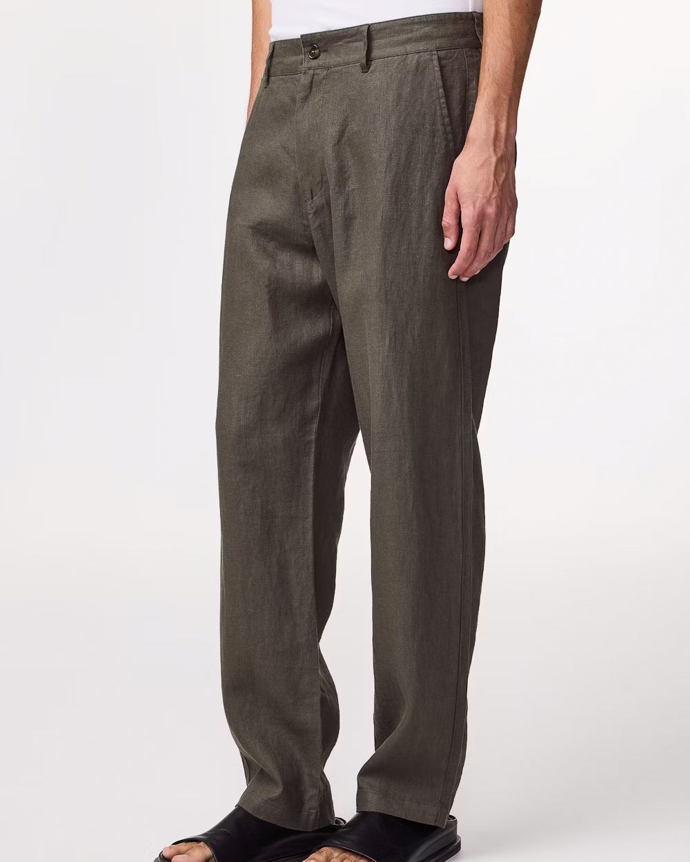 Aden är ett par klassiska linnebyxor i chinos modell, tillverkade med europeisk linne och kommer i en regular fit.