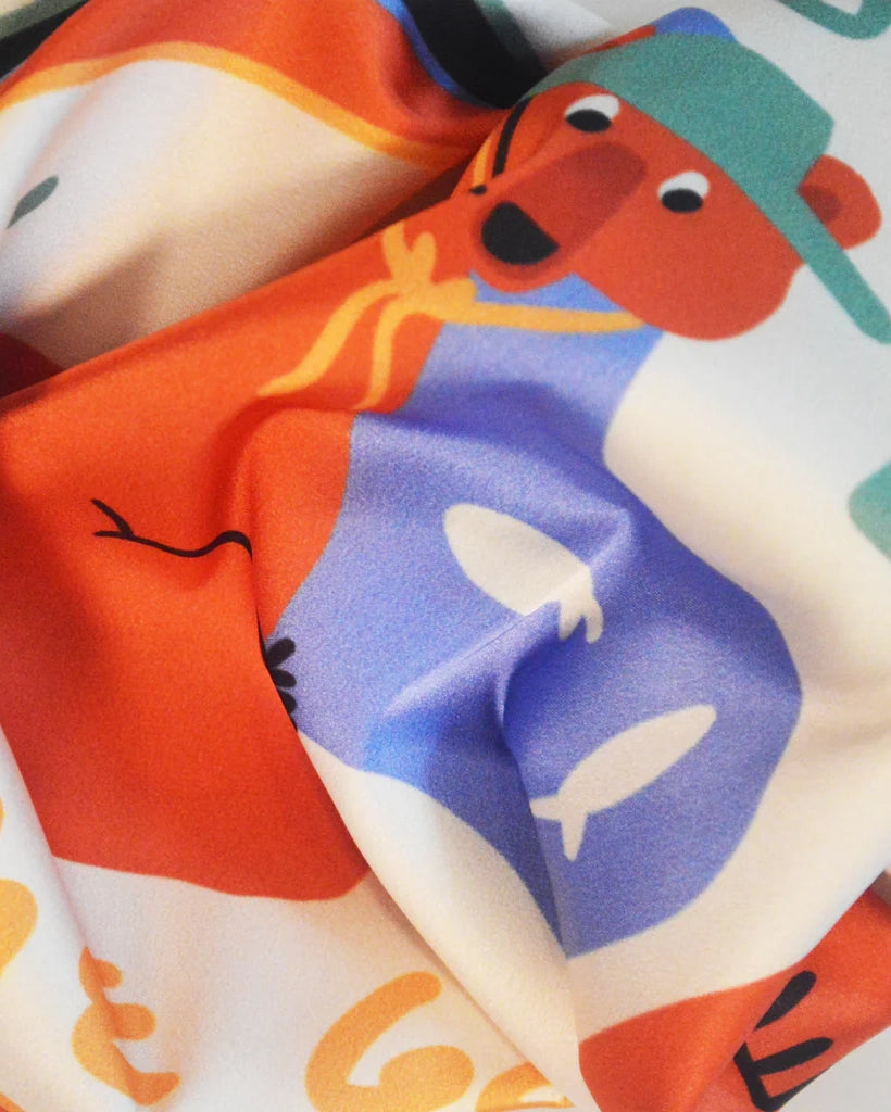 The Into the Wild bandana from ARDE is made of satin and has the perfect blend of softness and shine. They are lightweight and versatile, you can wear them around your neck, in your hair, as a belt or tied in your bag.