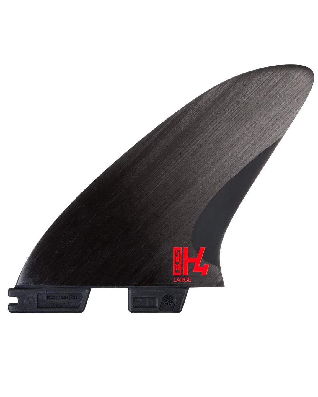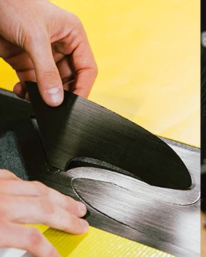 Surf fins from FCS made with carbon that have a unique shape and are designed in precision machines from Switzerland.