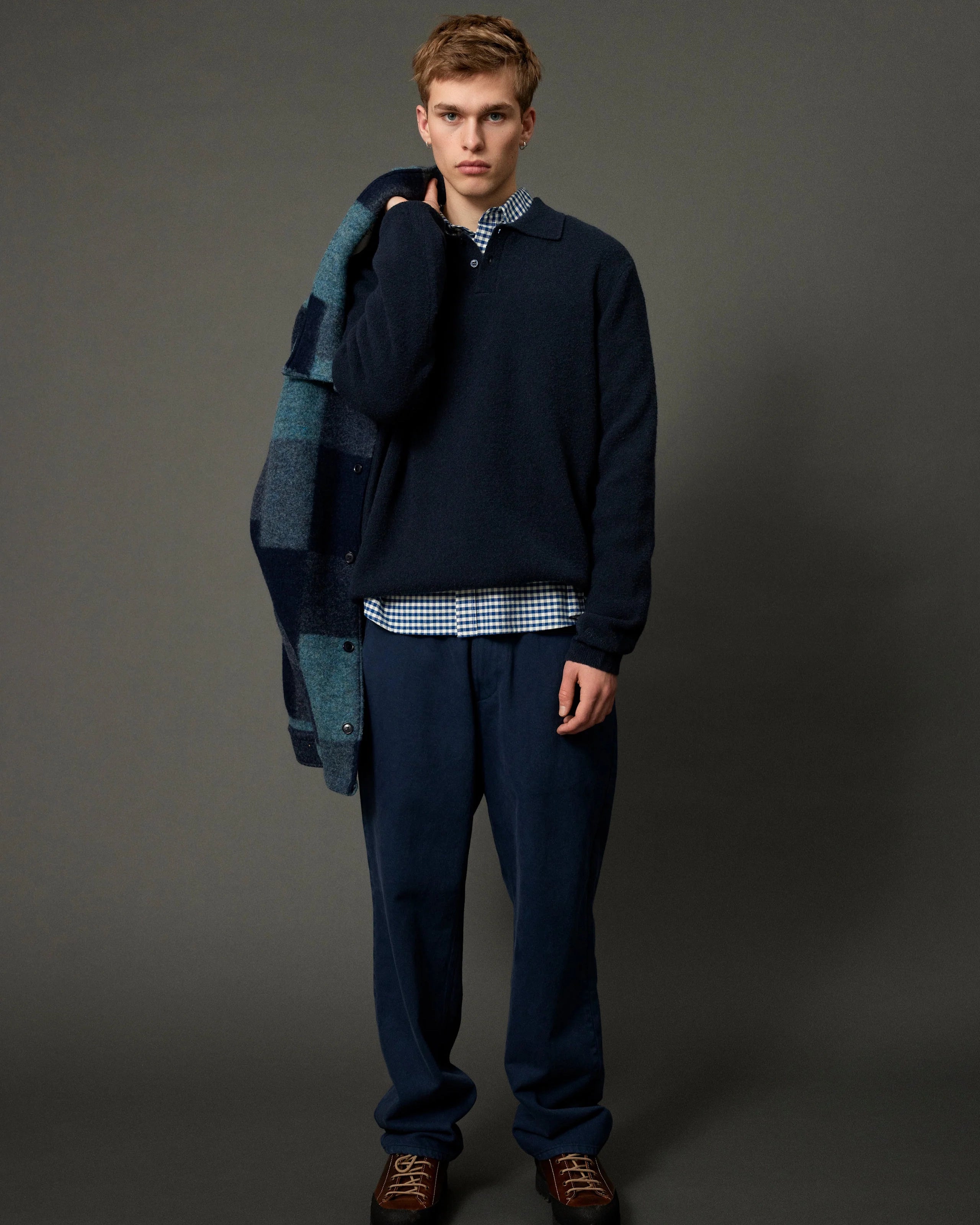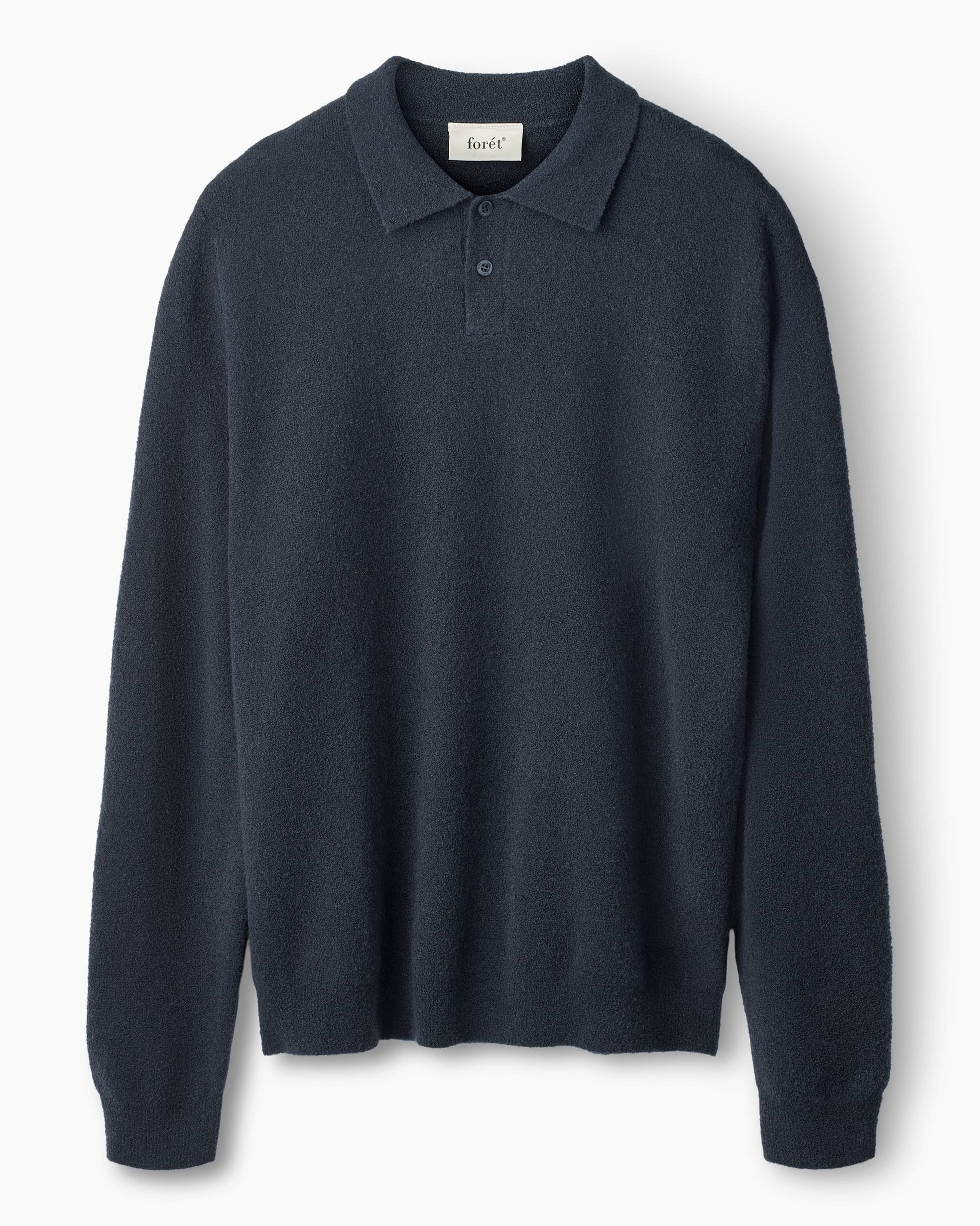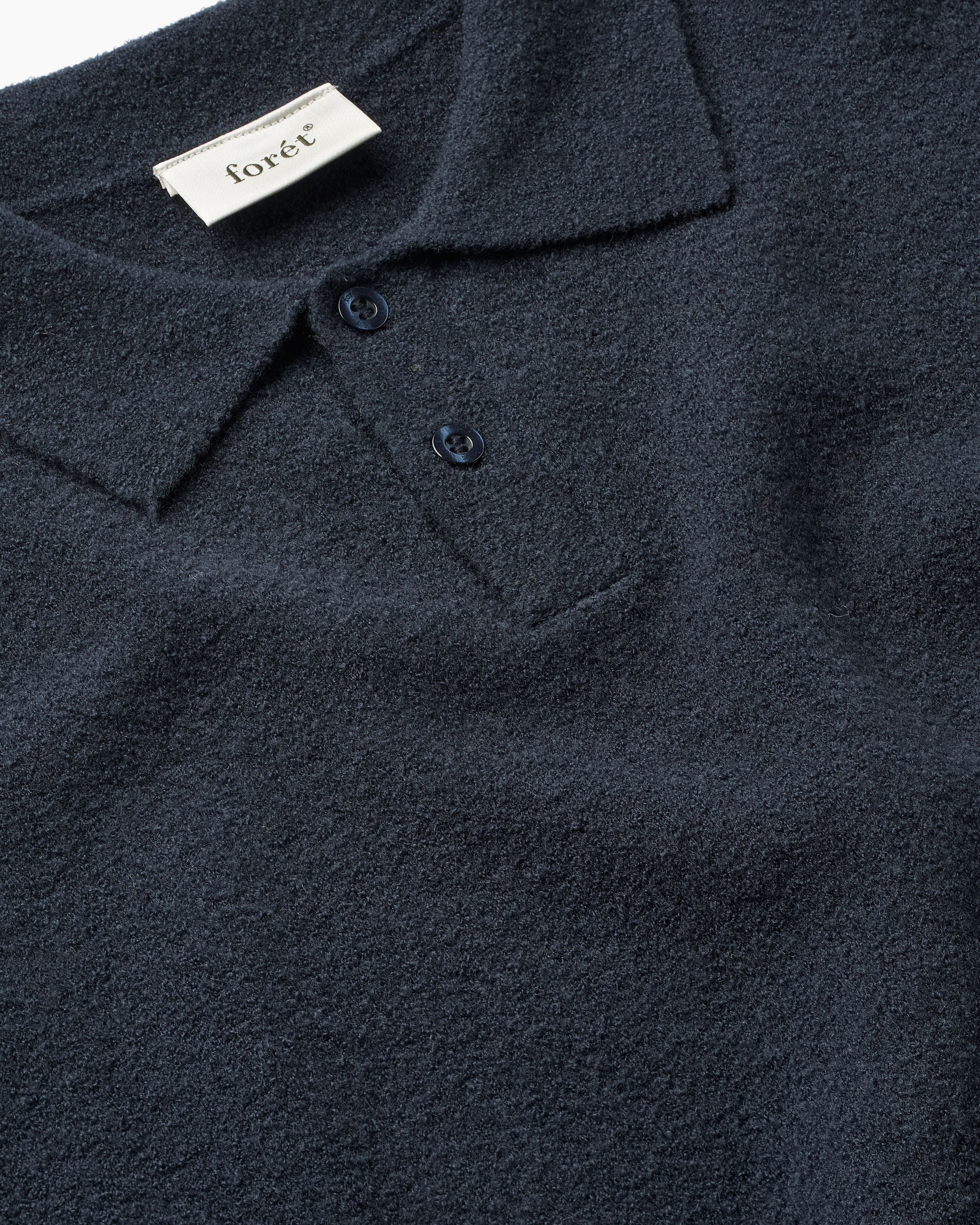Timber Brushed Polo Knit från Foret, tillverkad av en ullblandning med borstad finish, erbjuder denna pikétröja exceptionell mjukhet och värme, perfekt för de kallare årstiderna.
