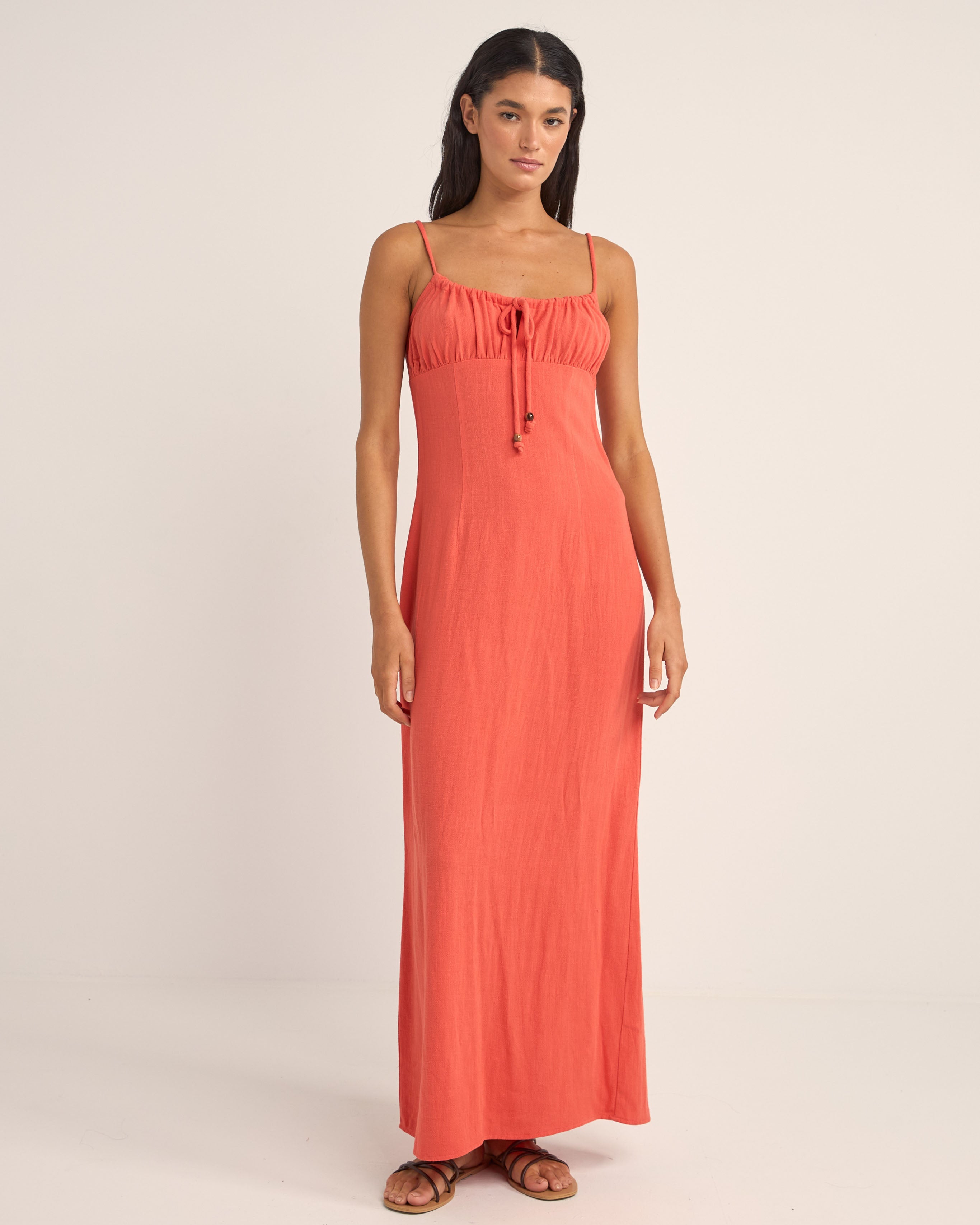 Austin Gather Maxi Dress - Coral