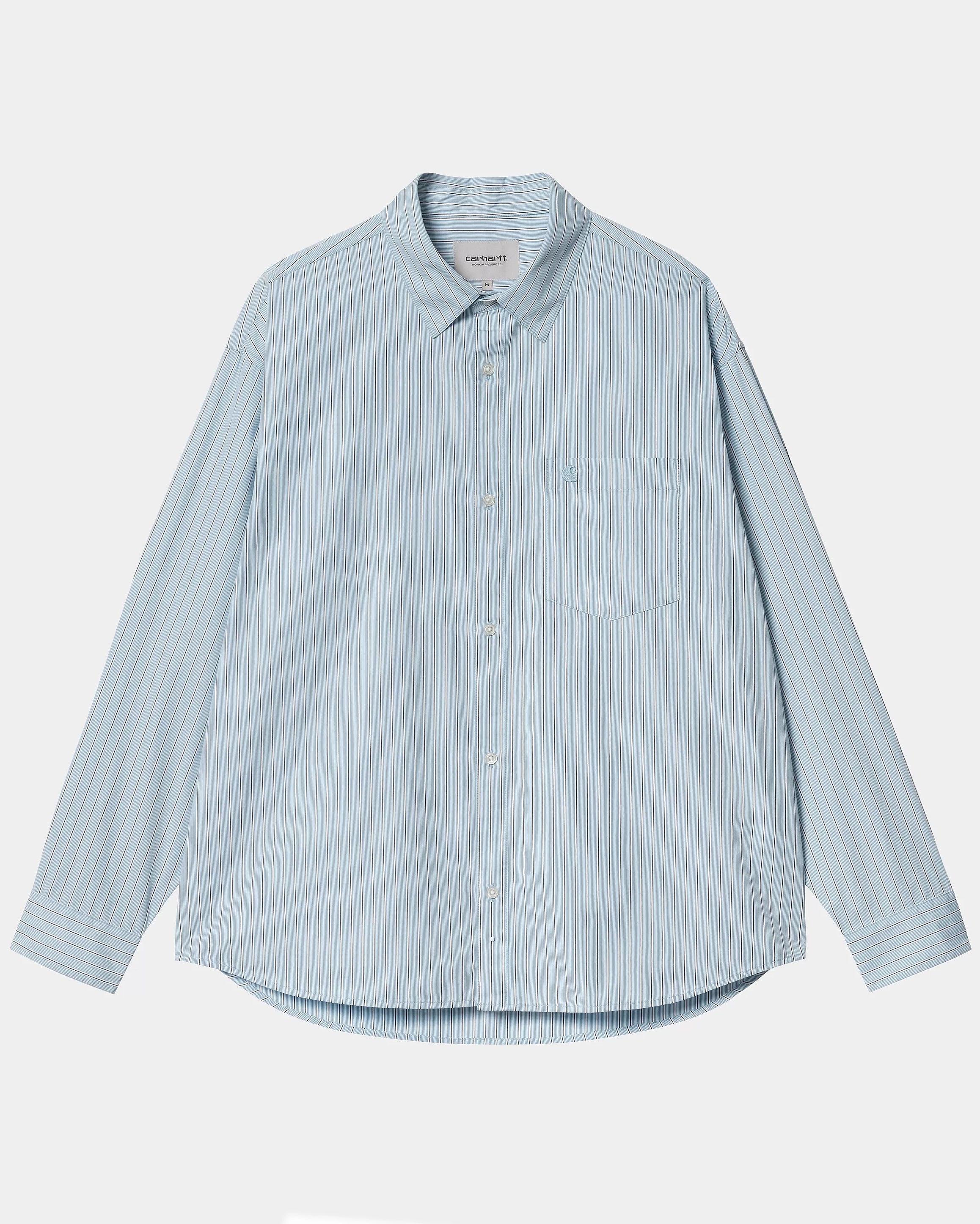 L/S Notus Shirt from Carhartt Wip, made of 100% poplin cotton and comes in a relaxed fit, decorated with embroidered logotype on the chest pocket.