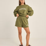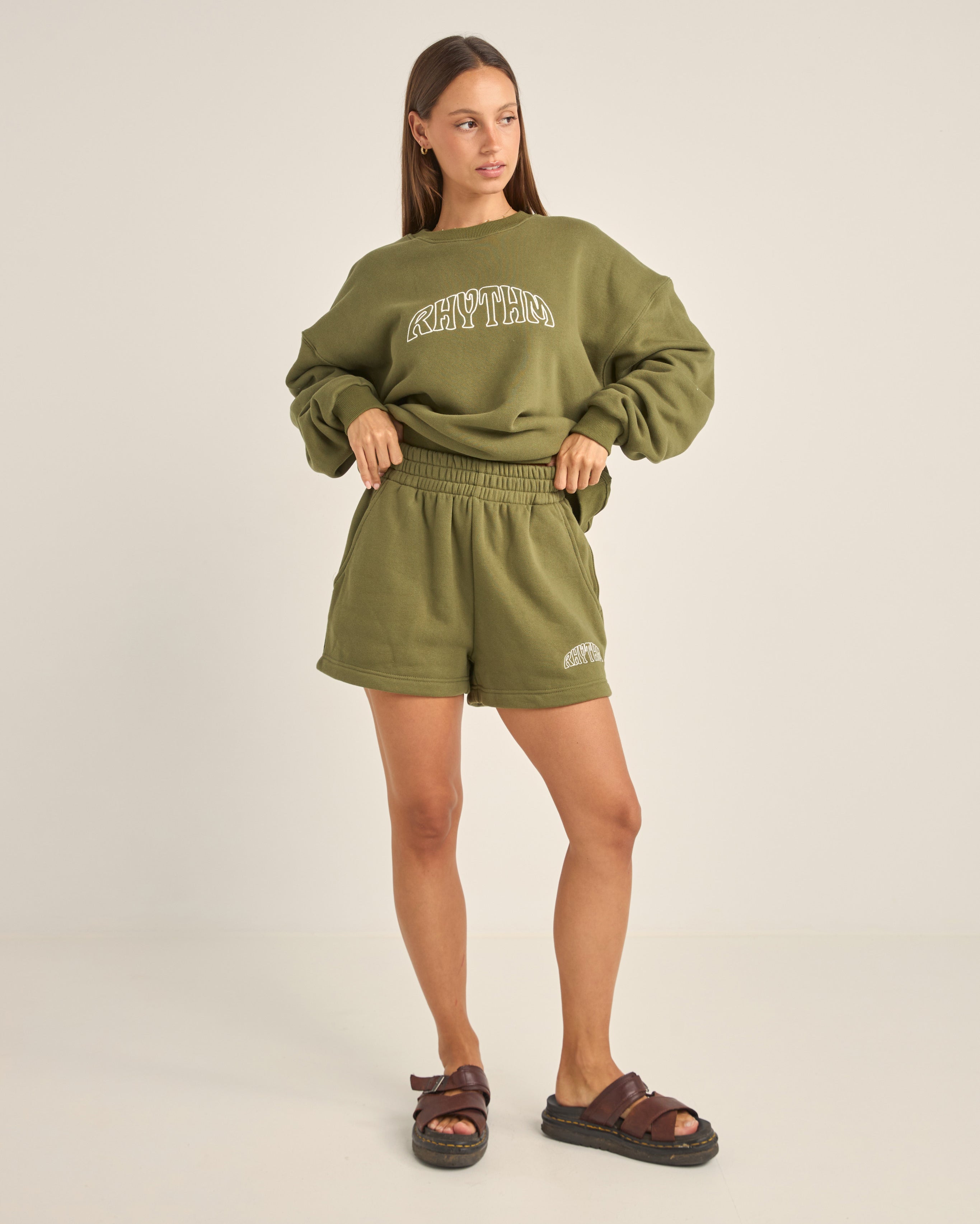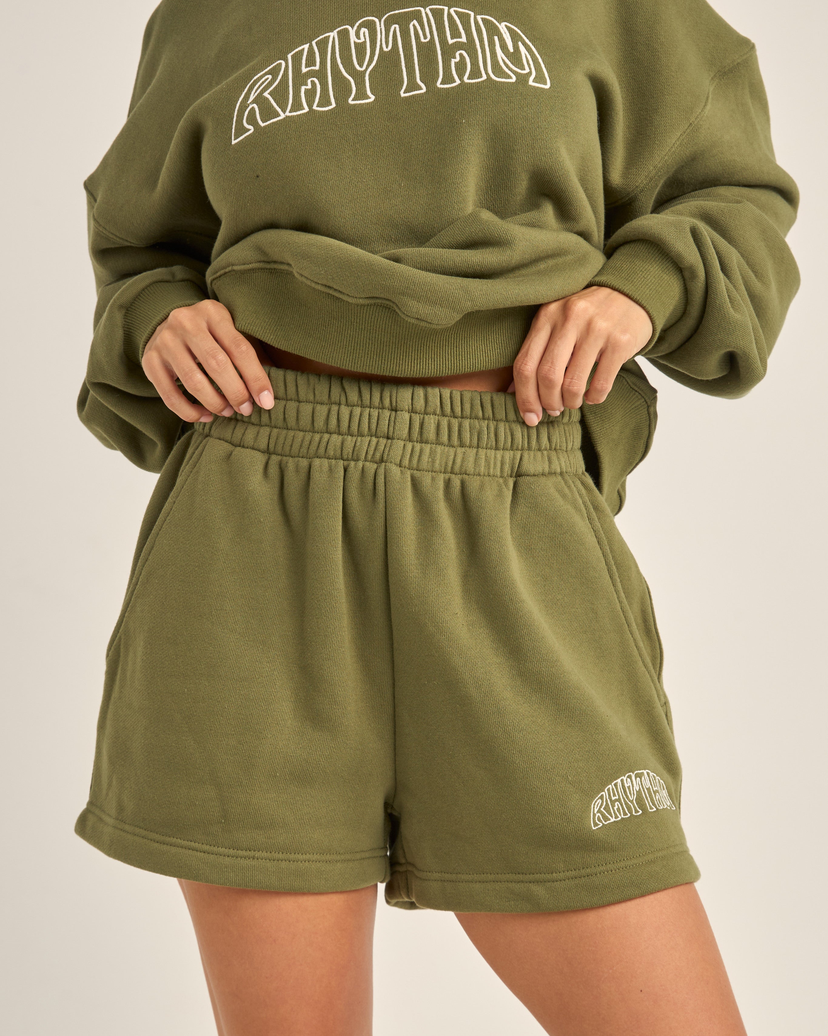 College Fleece shorts from Rhythm, decorated with a logo on the front and coming in a relaxed fit, are made of 100% cotton.