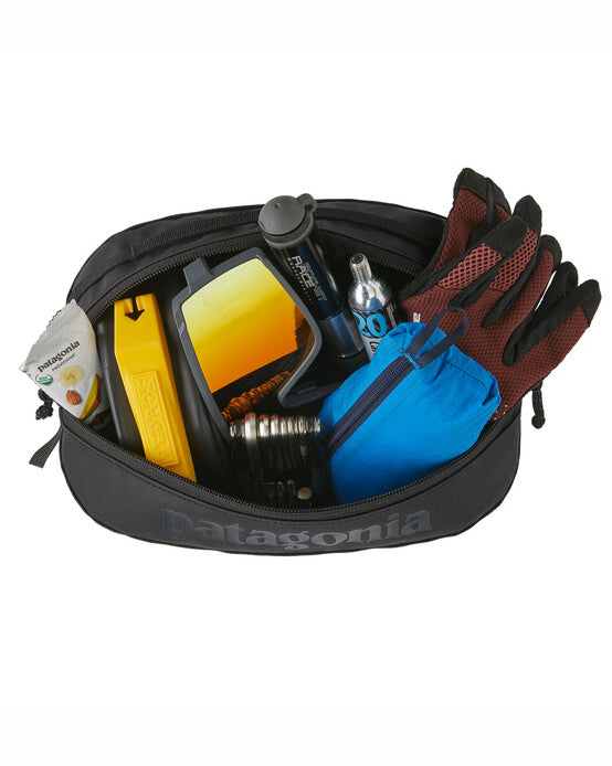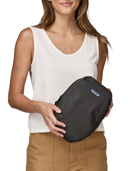 The Black Hole Cube 6L from Patagonia is a versatile bag that holds 6 liters and is made from 100% recycled materials.