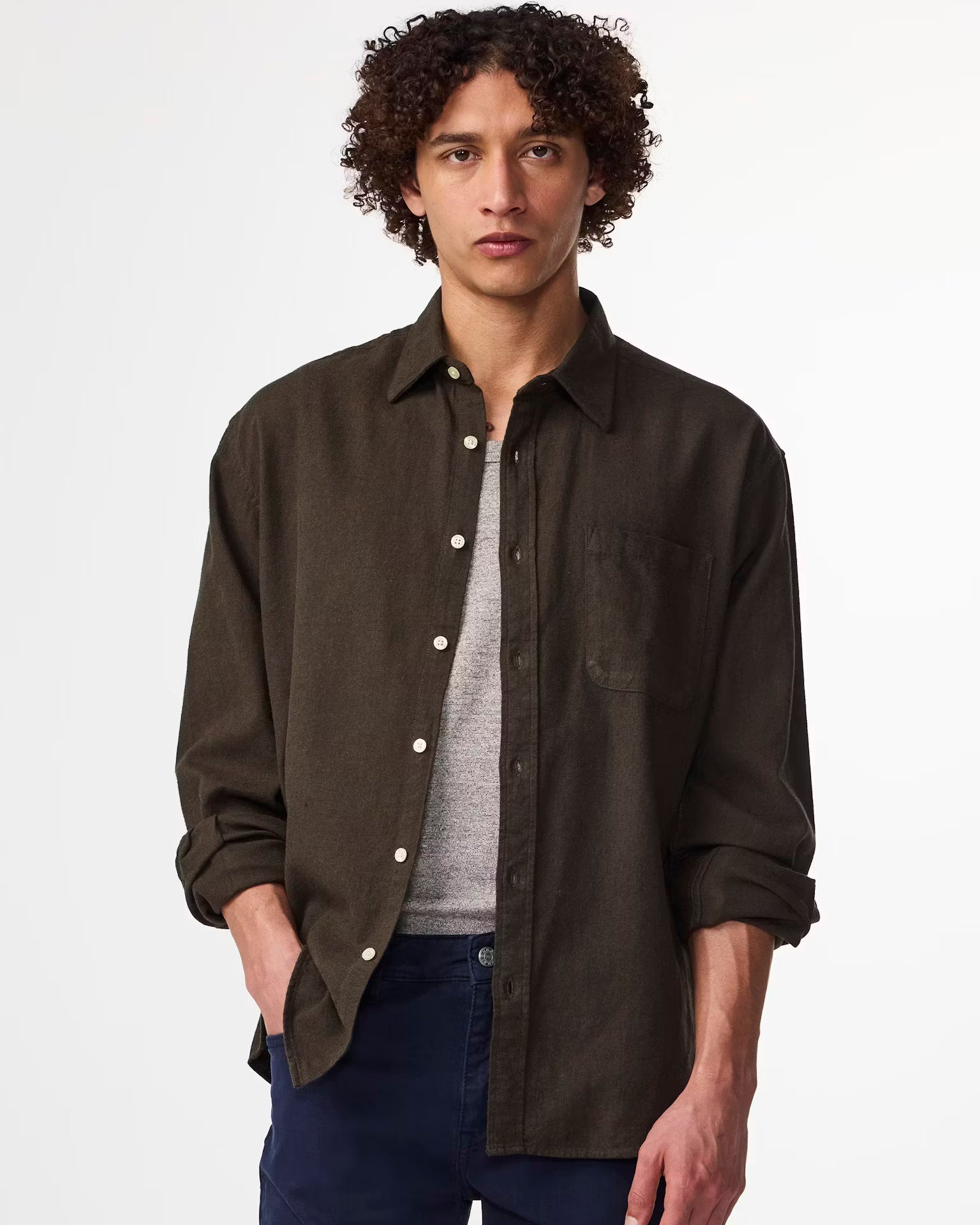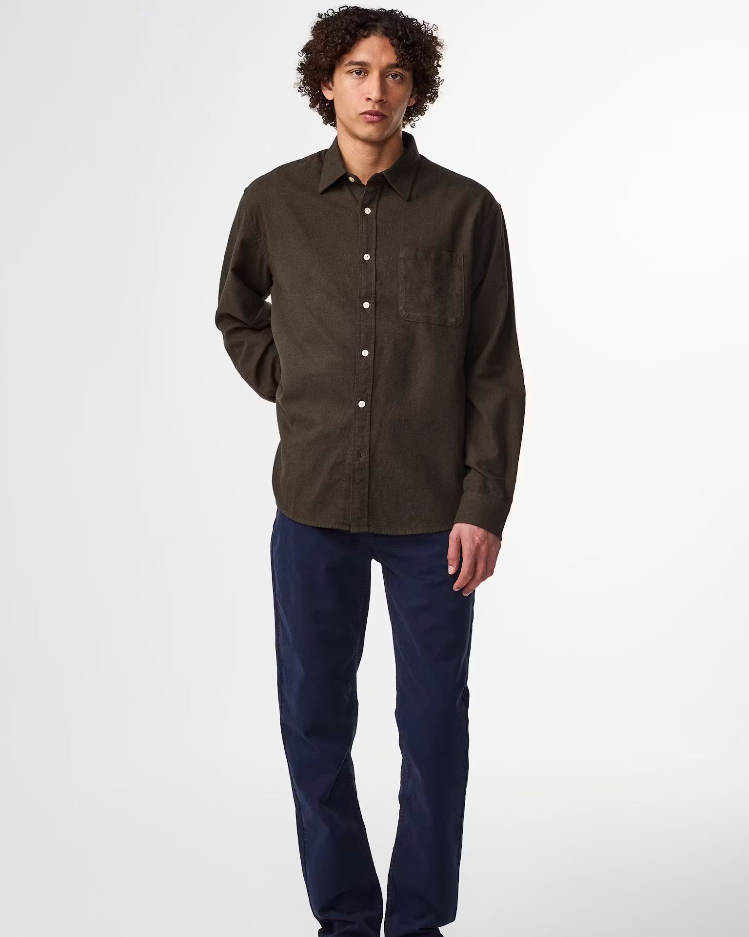 Deon 5465 is a soft flannel shirt from NN07, comes in a regular fit and is designed with a single patch pocket and rounded hem.