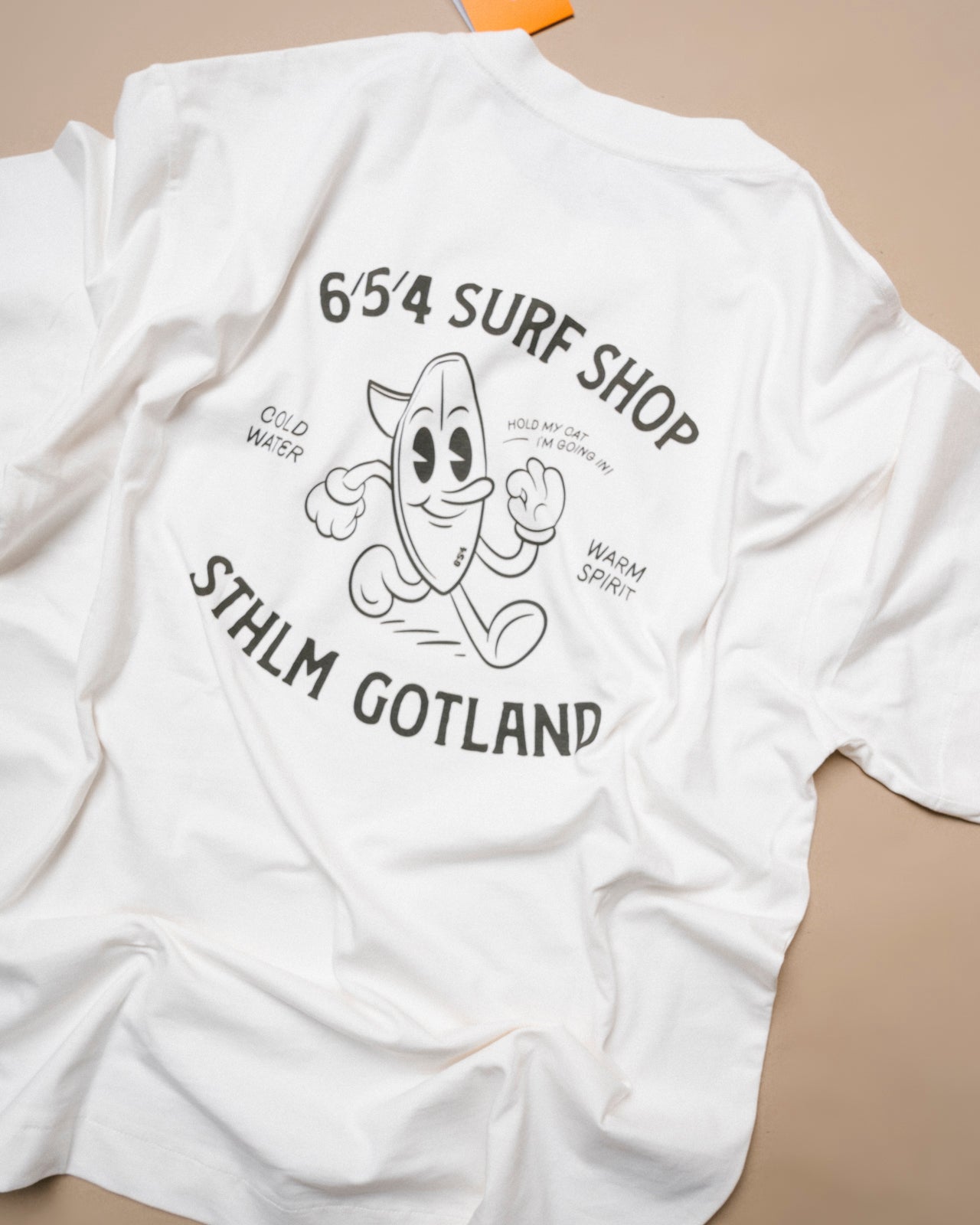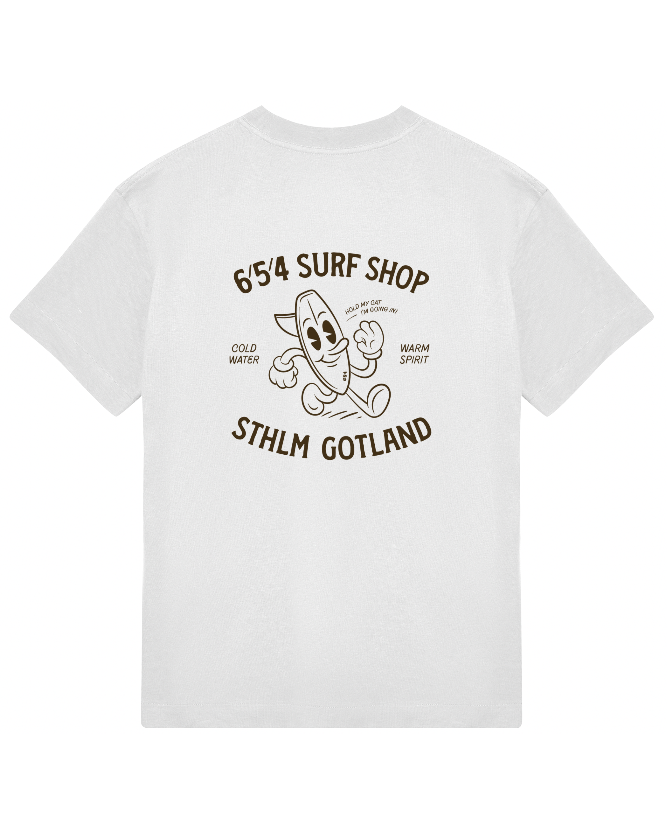 Hold My Cat Tee from 6/5/4 Supply, pays homage to the Scandinavian surf culture "Cold water - Warm spirits" made of 100% cotton.