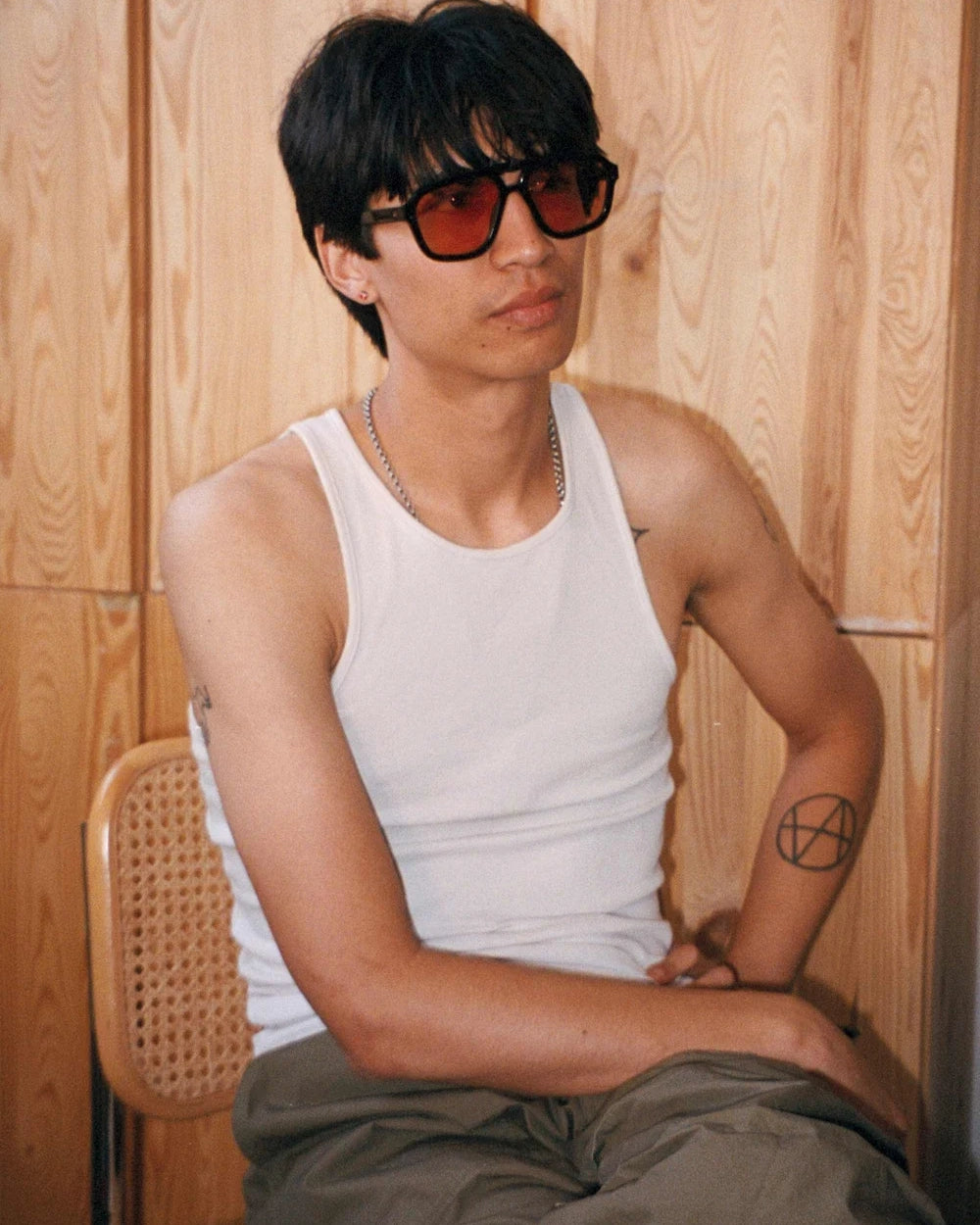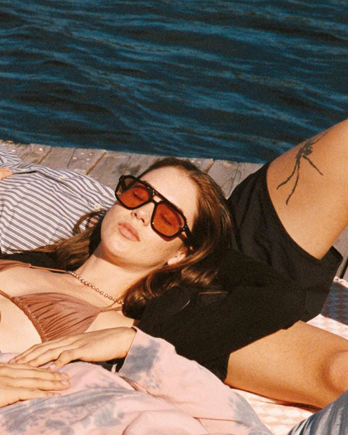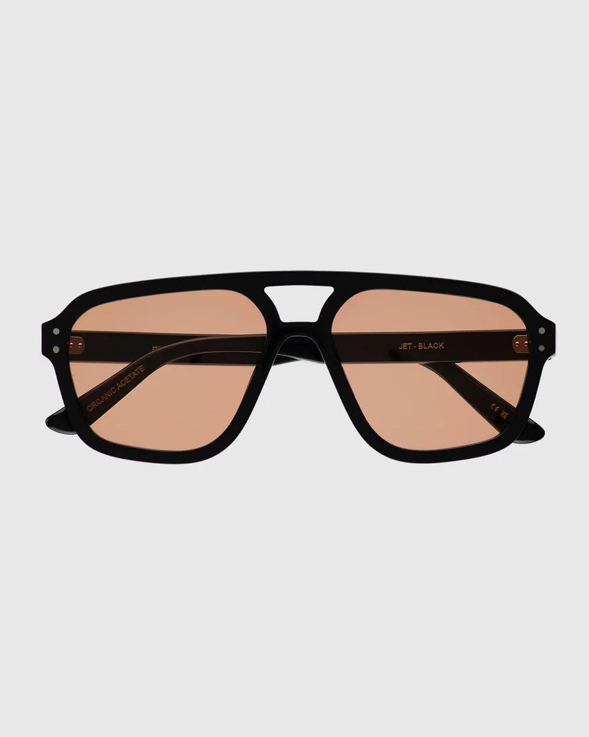 Handmade sunglasses in a unisex model from Monokel Eyewear, stylish 70s inspired aviator frames.