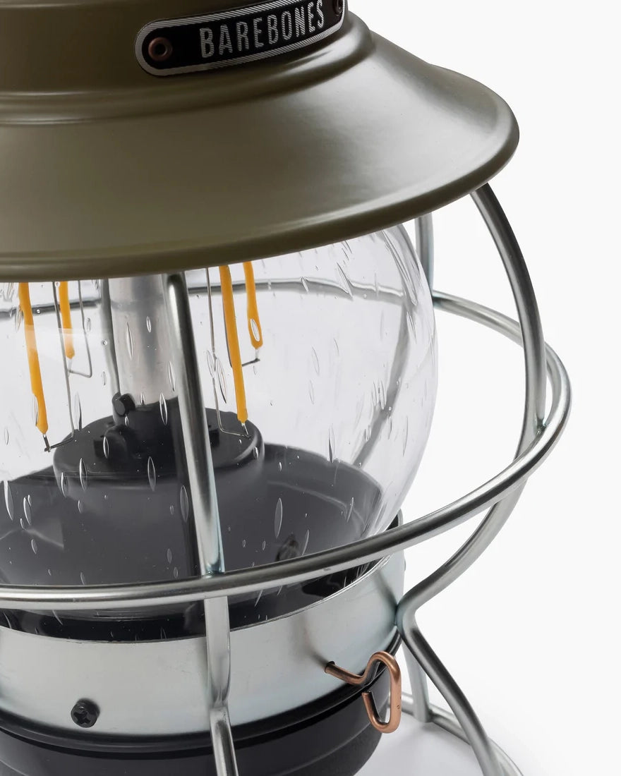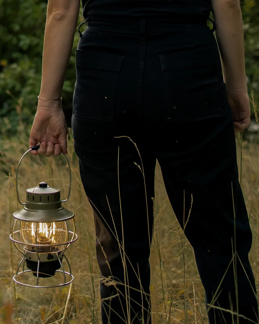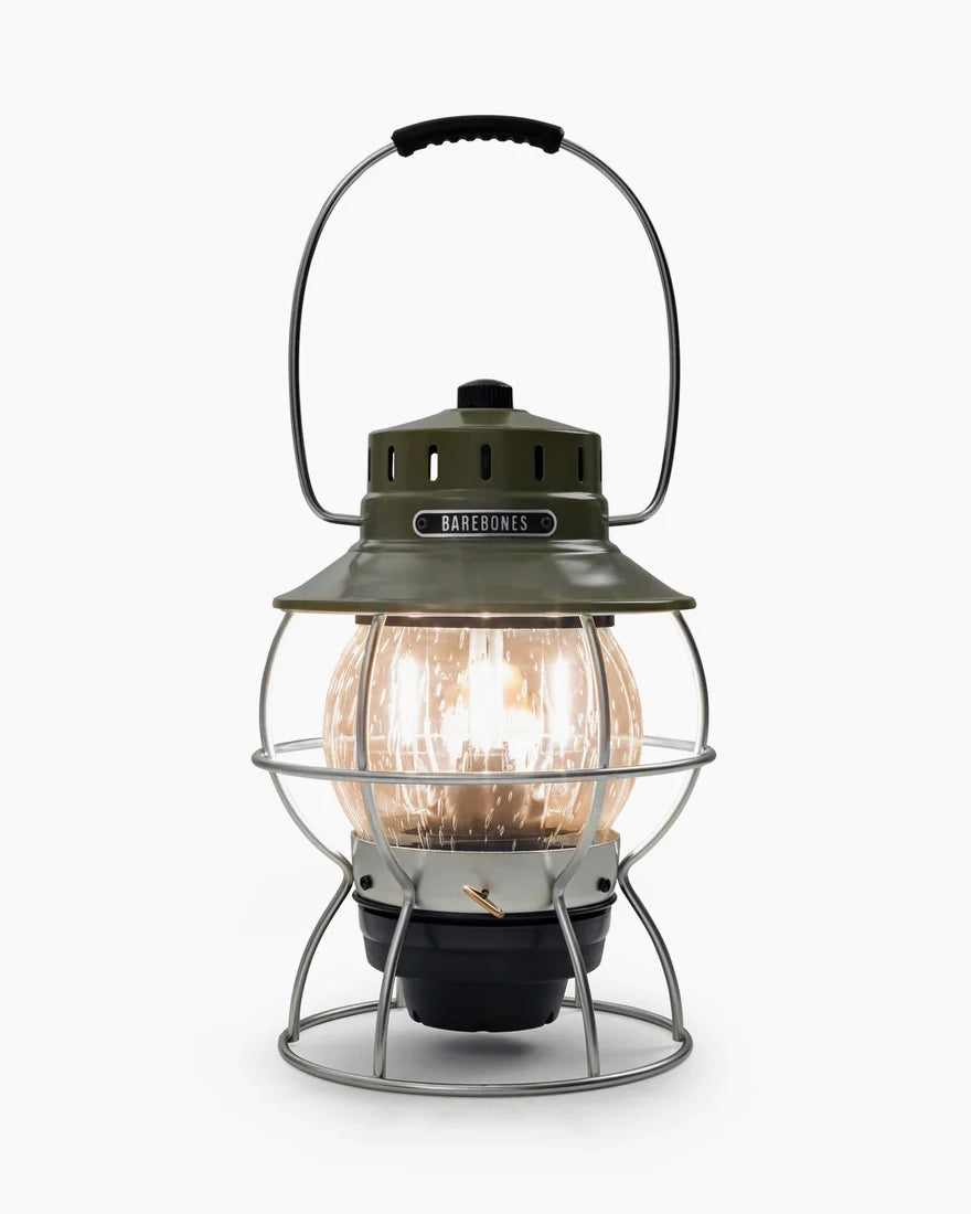 Vintage inspired lantern from Barebones with rechargeable battery.