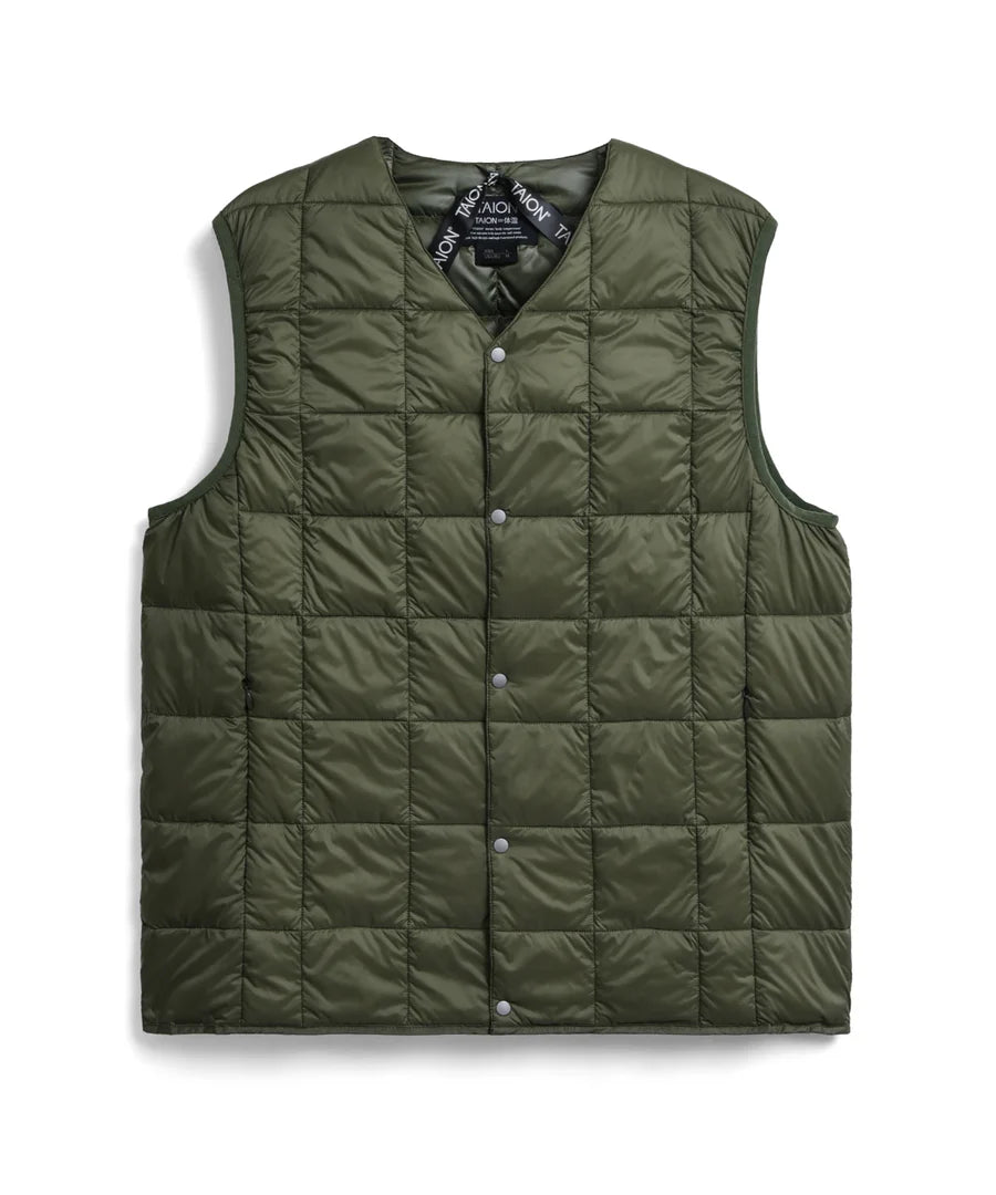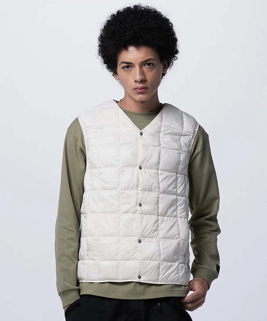 Dunväst från Japanska Taion, perfekt lättvikts-väst att bära lager på lager eller utanför tröjan för en avslappnad casual look.