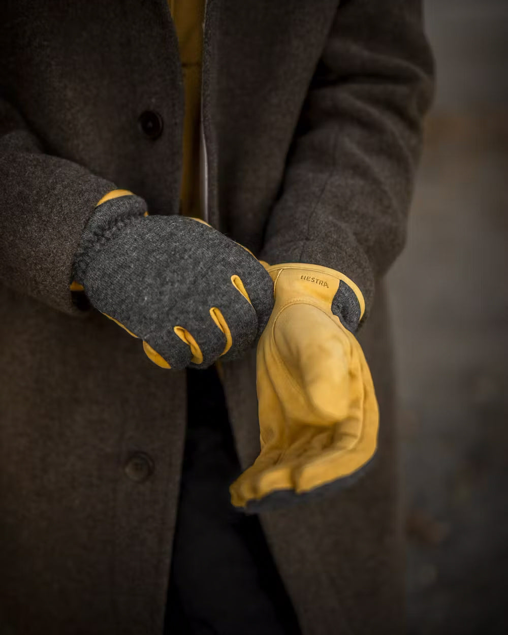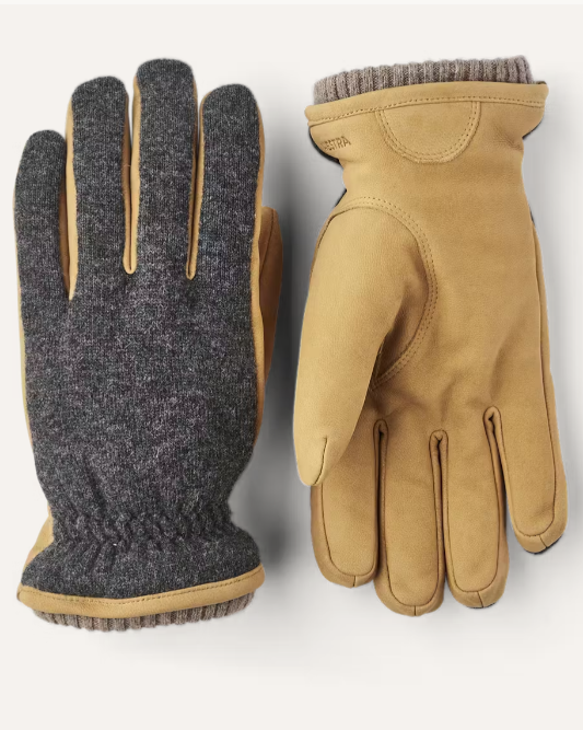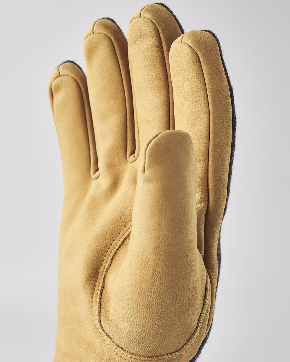 Timeless leather glove from Swedish Hestra, made of sturdy nubuck leather with a wool jersey upper, a warming everyday glove that is just as suitable for office days in the city as for free time in nature.