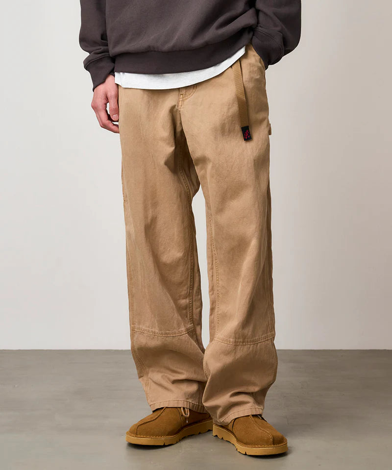 Canvas Work Pants från Gramicci är tillverkad i blanding av bomull och hampa, byxan har elastisk midja med integrerat bälte, totalt 7 fickor har har en vid passform.