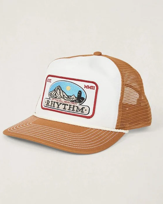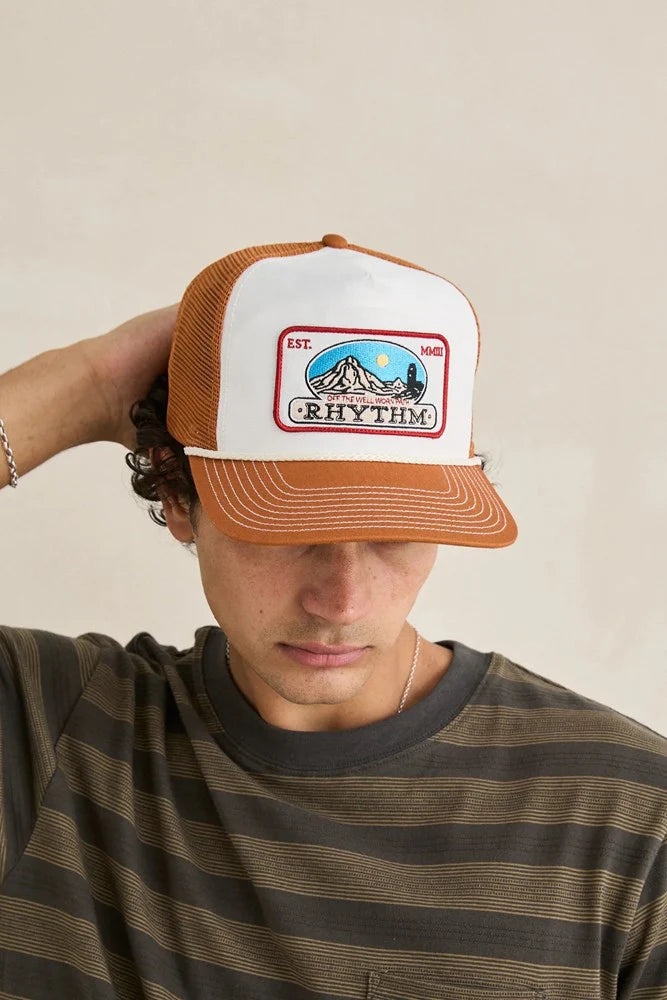 Horizon Trucker Cap från Rhythm pryds av stor påsydd logotype och har en framsida i bomull och bakre del i mesh.