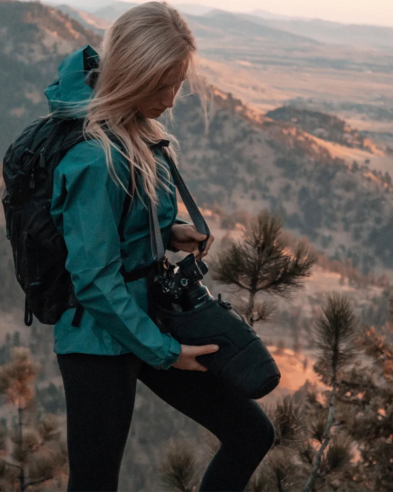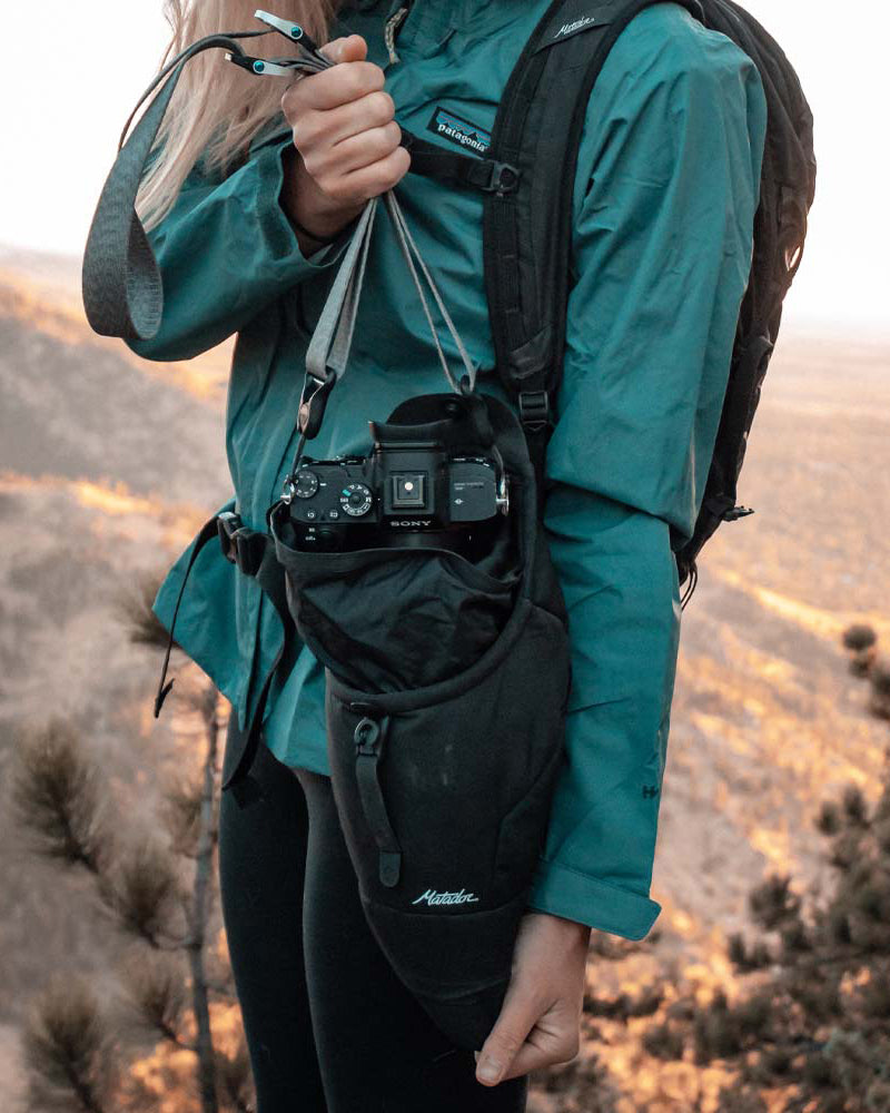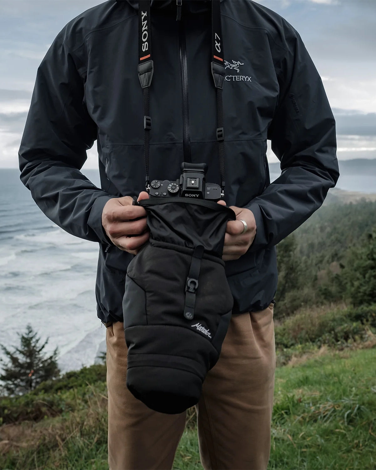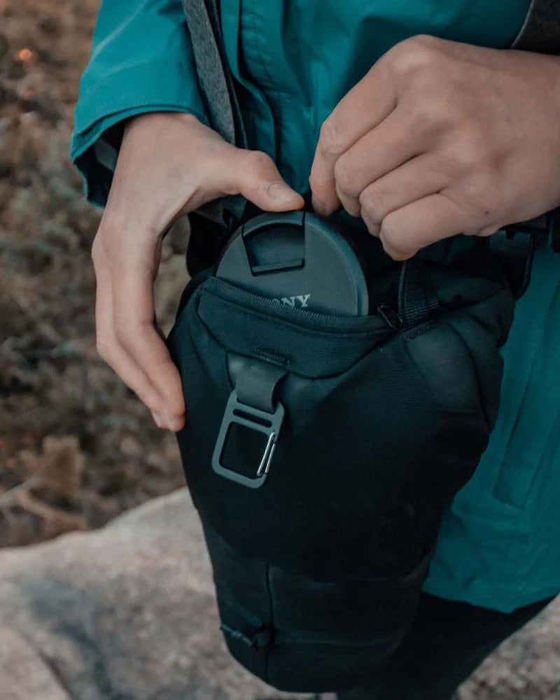 - Zippered pocket for lens cap, camera card or hand warmer (to maintain battery function in cold weather)