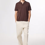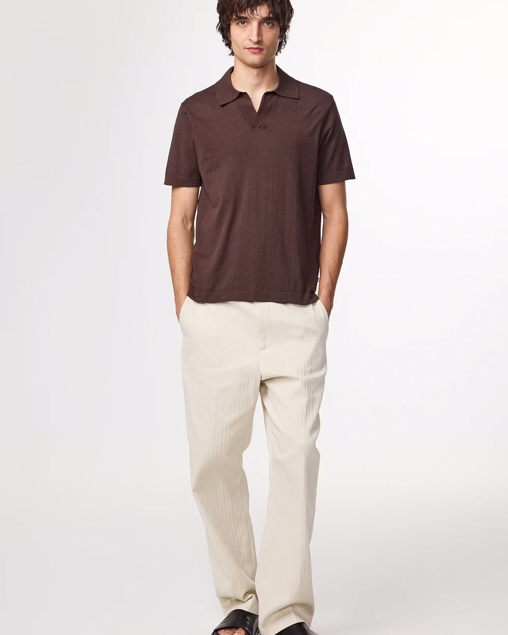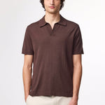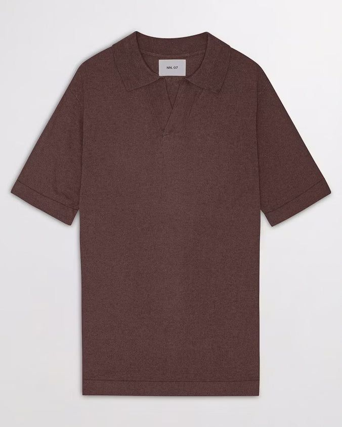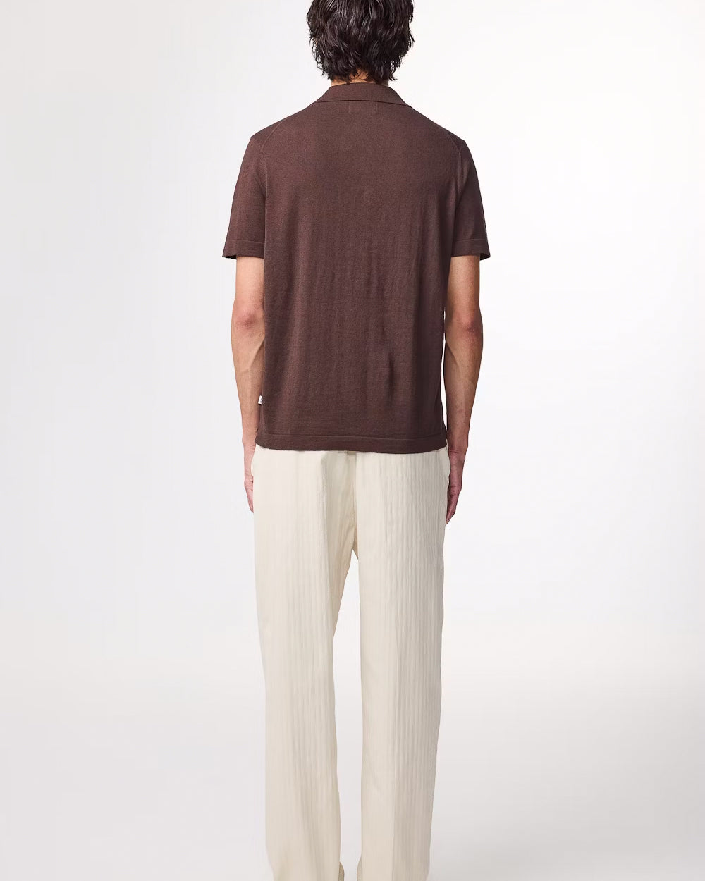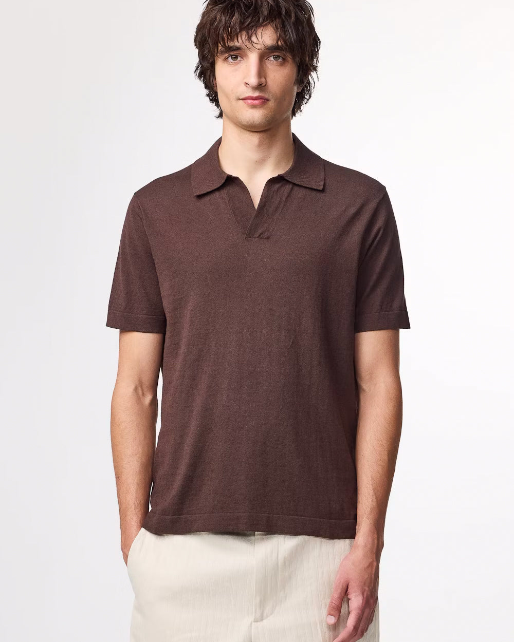 Ryan Polo from NN07 is an open V-neck polo shirt made from cotton and linen yarn, a light and breathable texture that is perfect for summer.