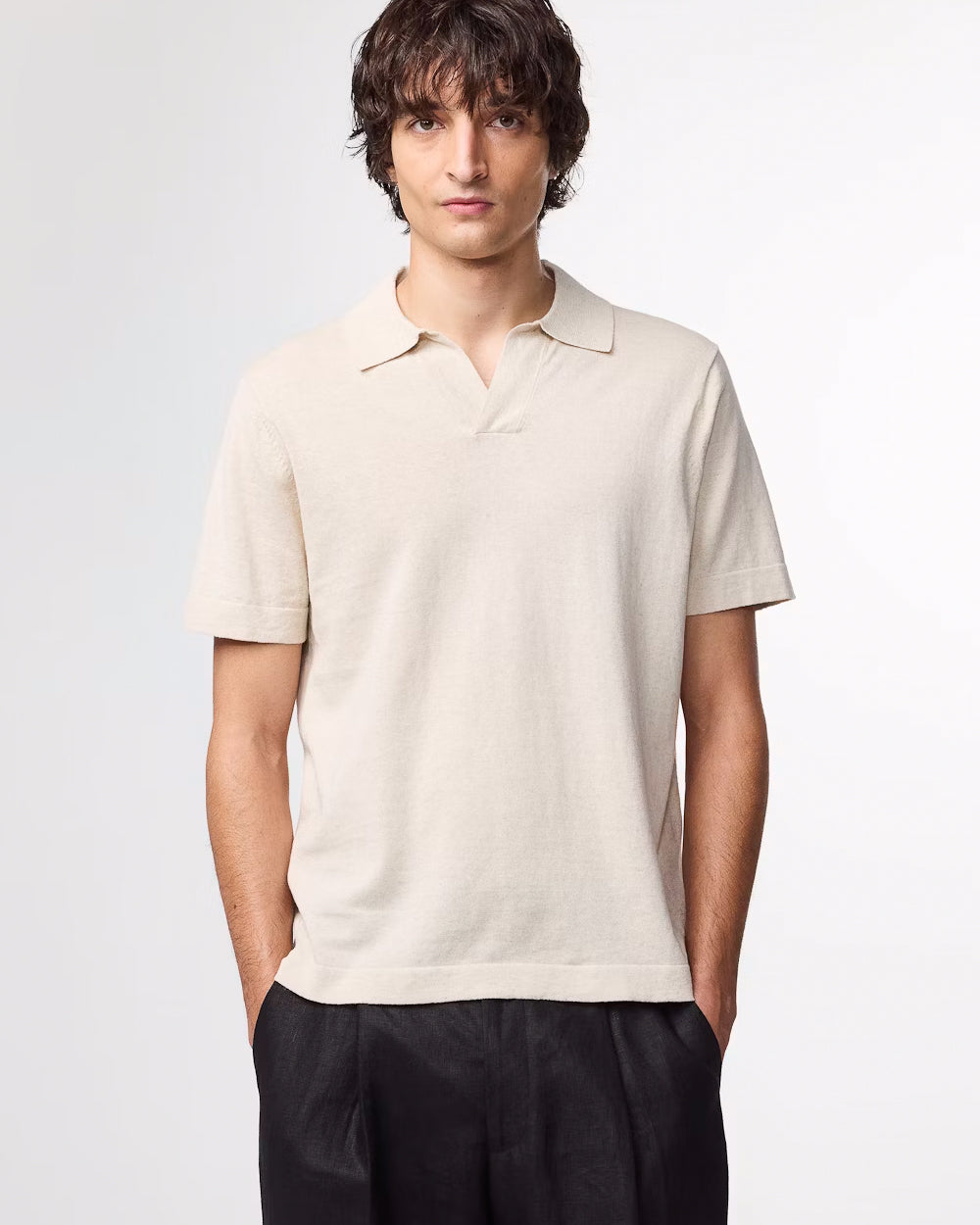Ryan Polo 6311 from NN07 is an open V-neck polo shirt made from cotton and linen yarn, a light and breathable texture that is perfect for summer.