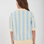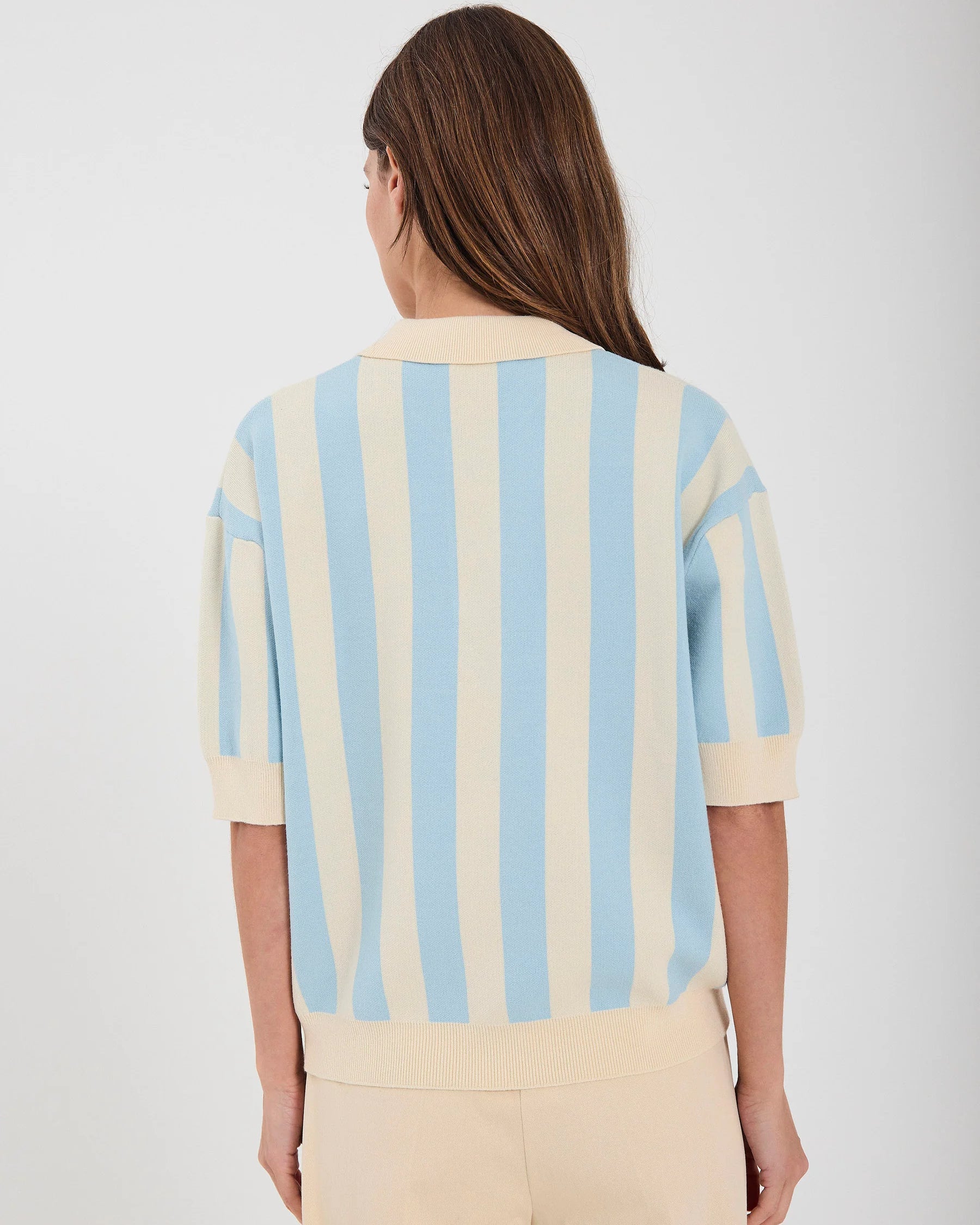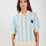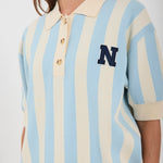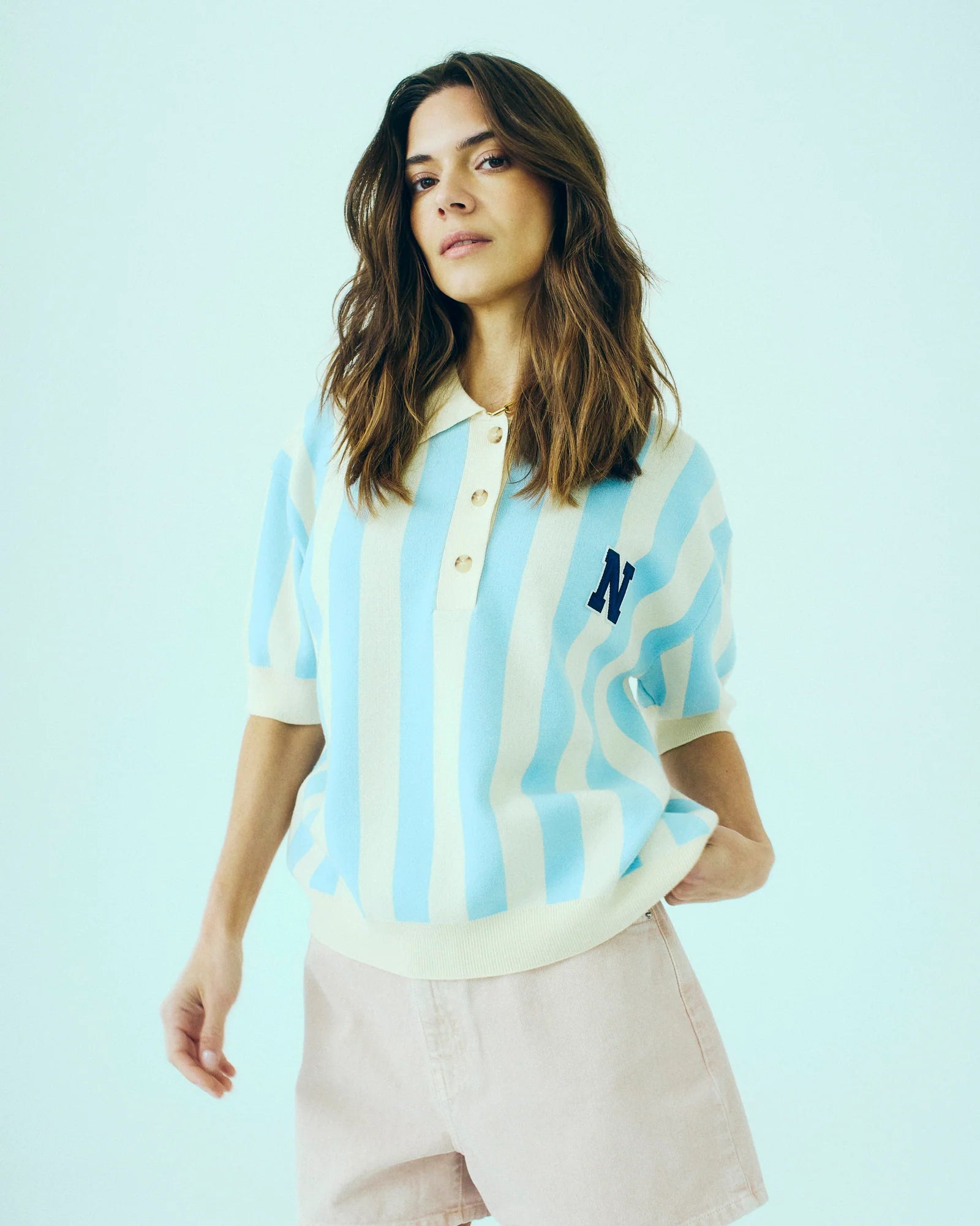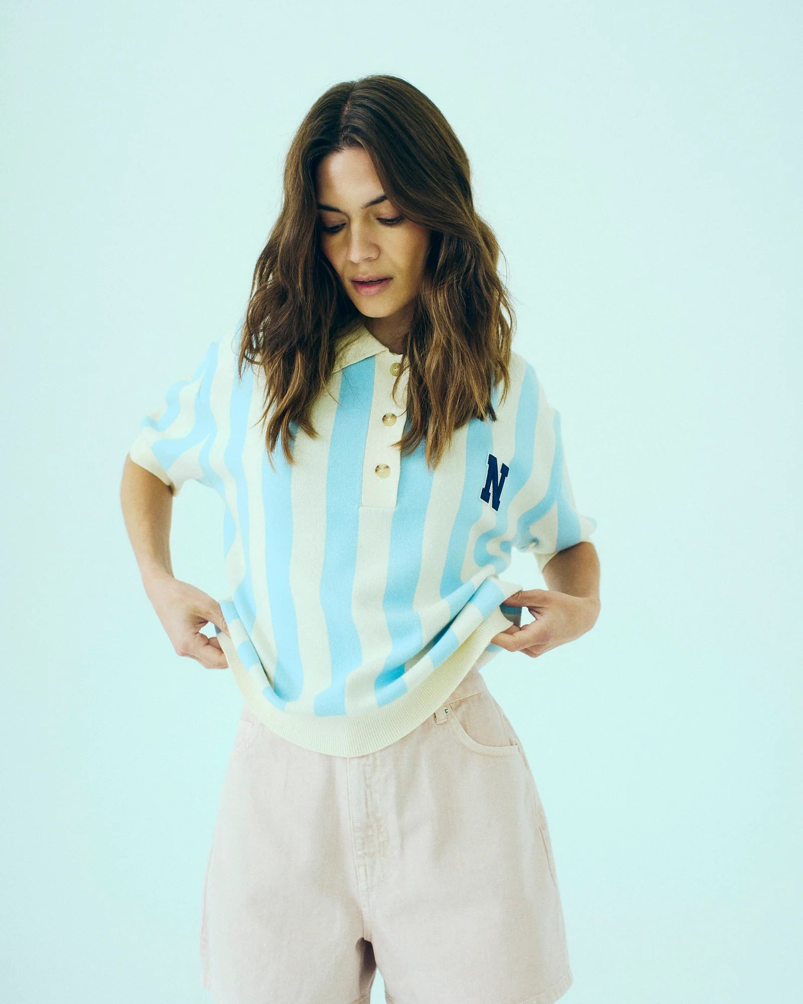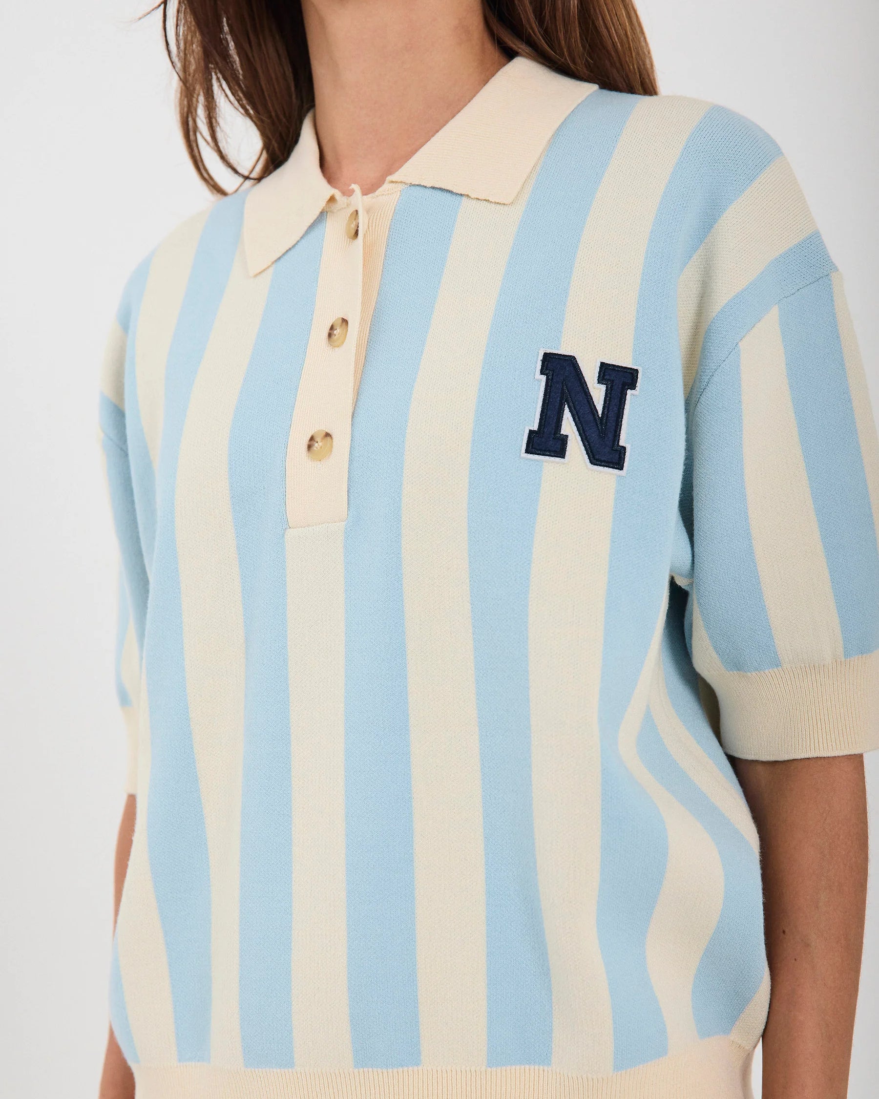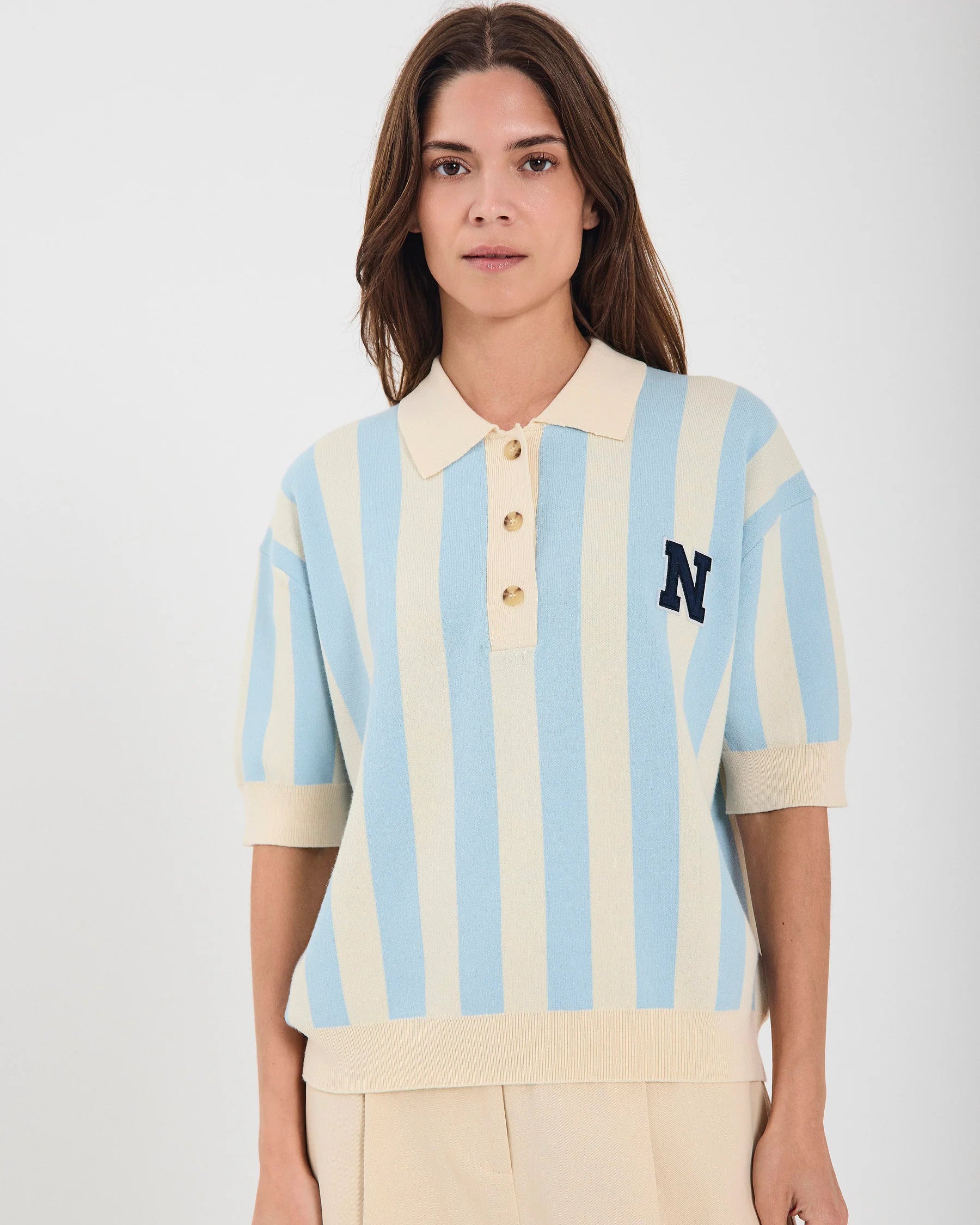 Varsity Knit Polo från Norr är en kortärmad polotröja med breda ränder, pryds av en klassisk krage med knappar i hals.