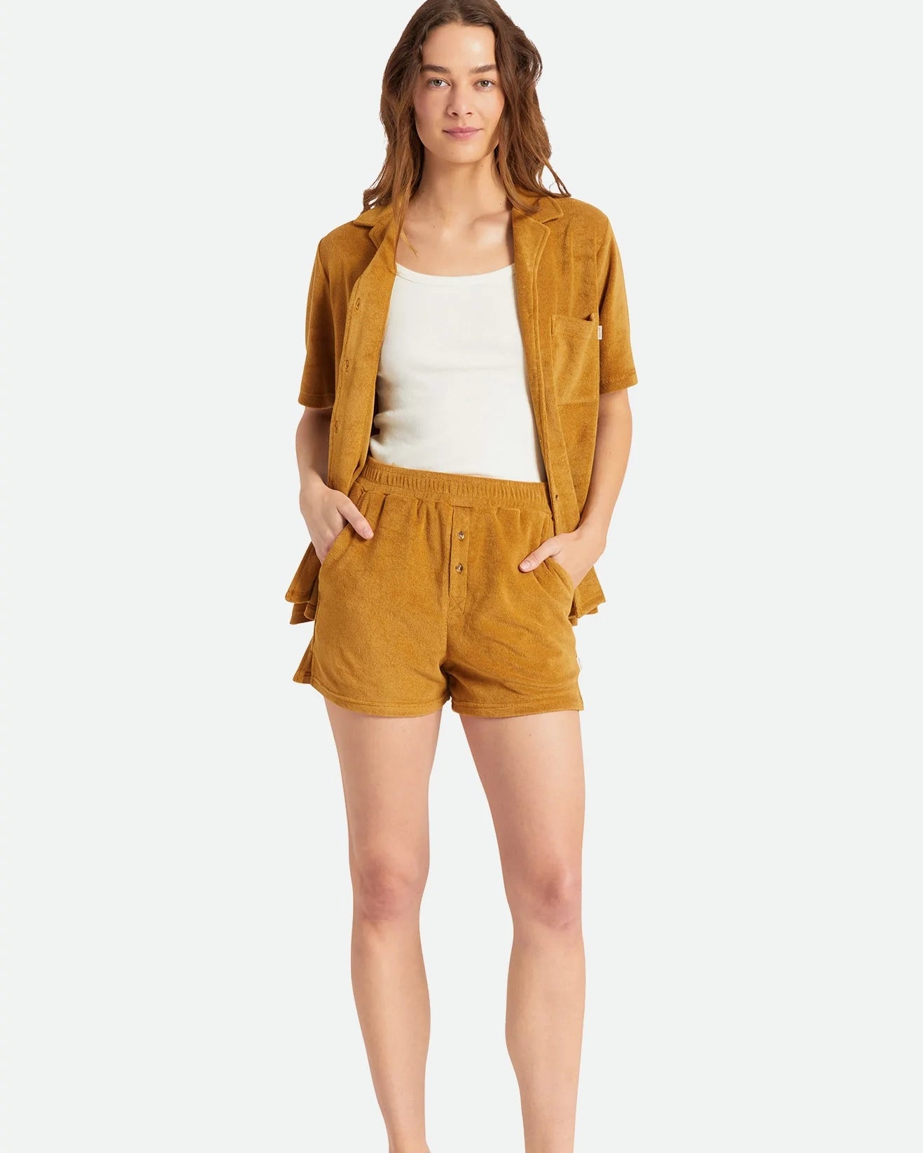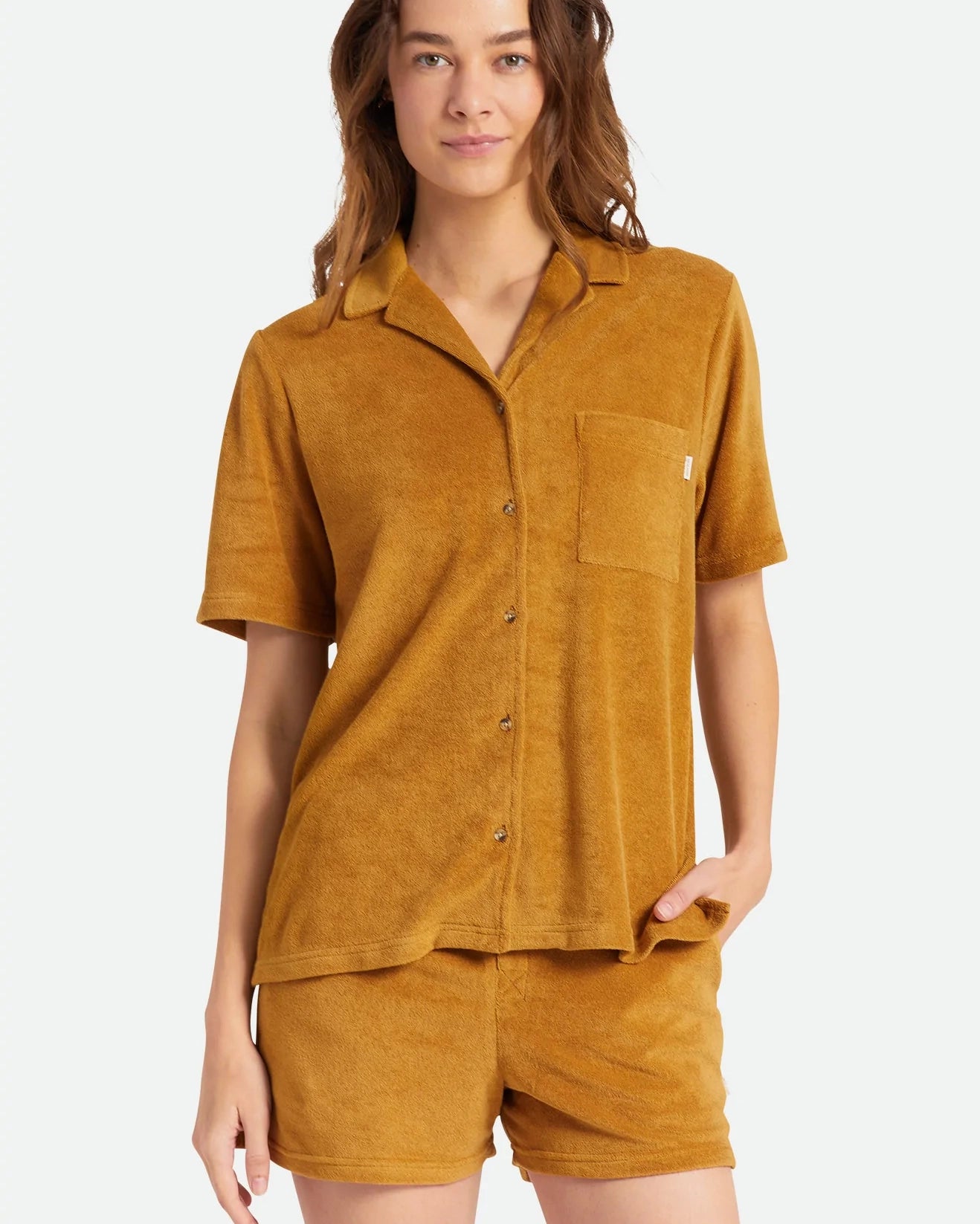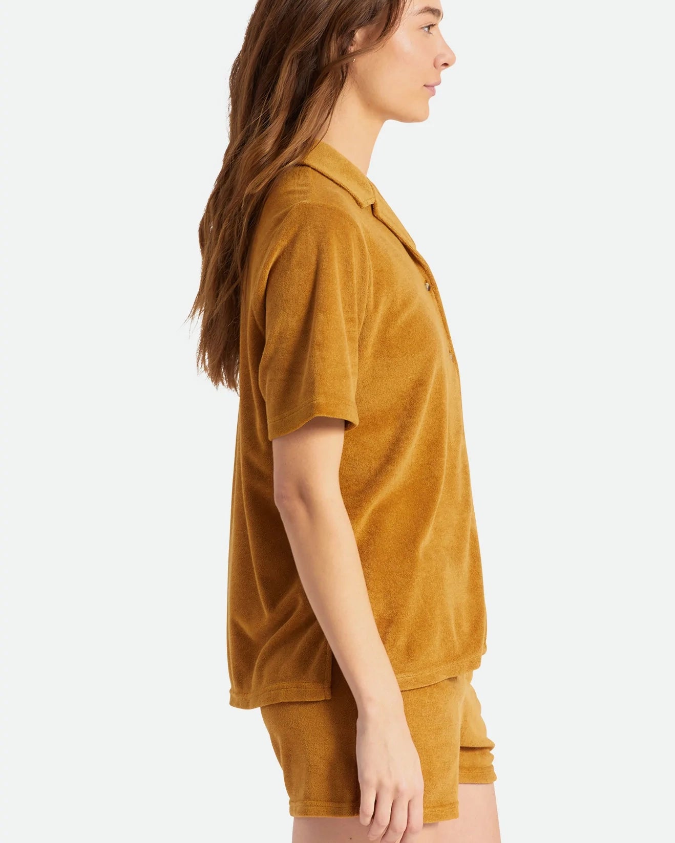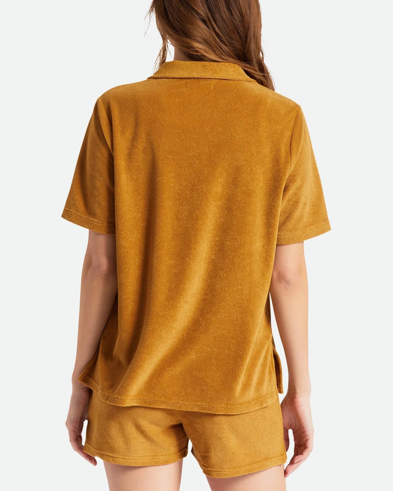 Short-sleeved terry shirt with a relaxed bowling collar from Brixton.