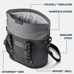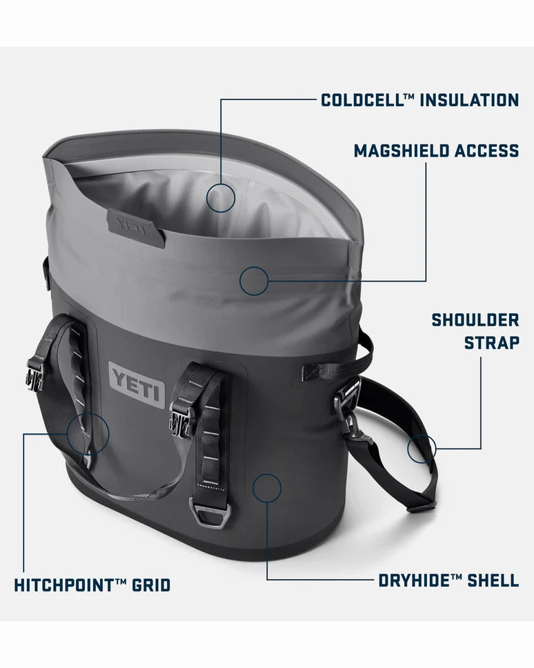 Hopper M30 is a sleek premium cooler bag from Yeti, carrying/shoulder strap, magnetic closure, coldcell insulation that keeps food and drinks cold throughout the day.