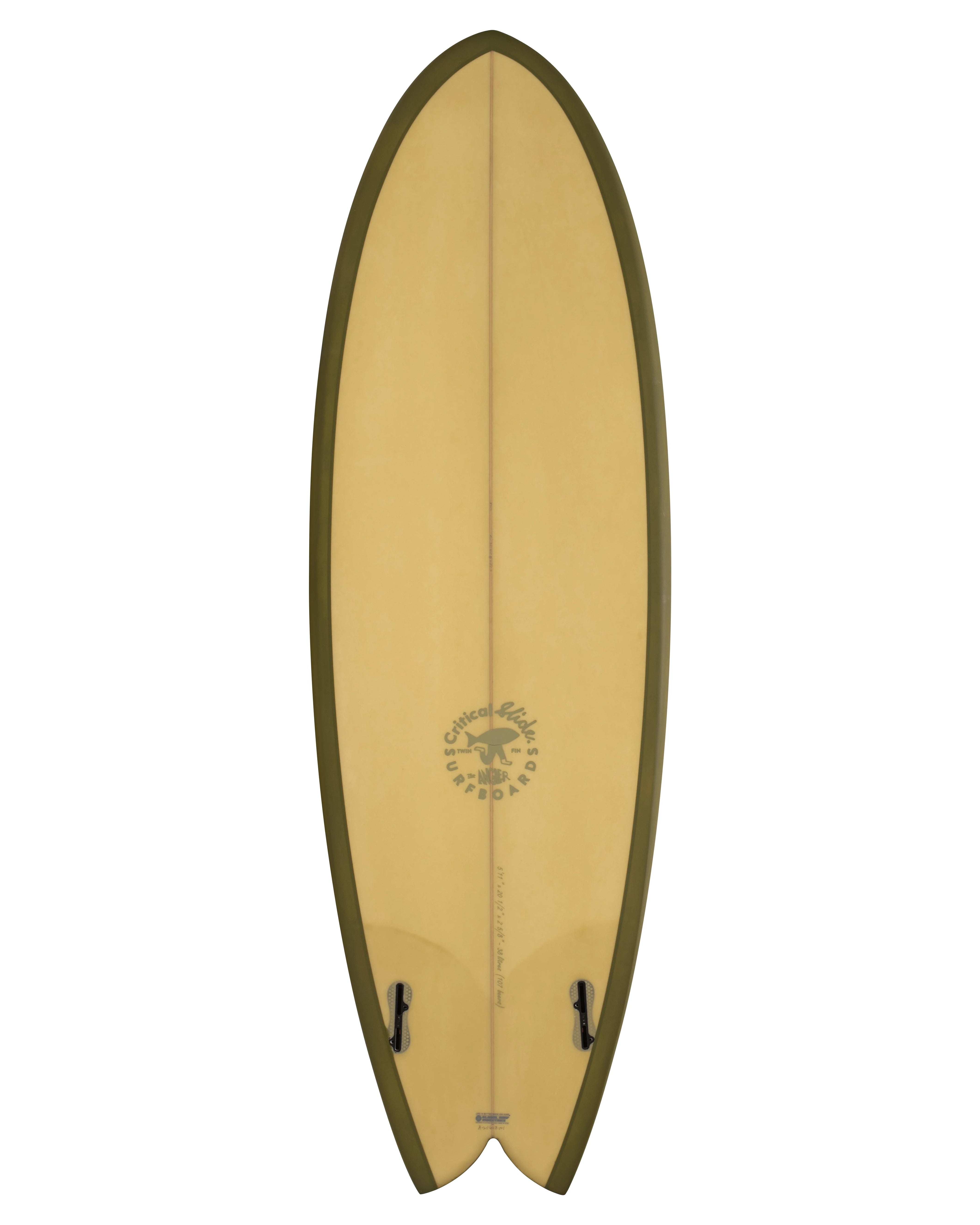 The Angler will feel fast, loose and have lots of forward drive. True to the way most twin fin boards surf these will generate loads of down-the-line speed. The pivoting capabilities of the twin will also make for smooth, effortless turning in small to medium size waves.