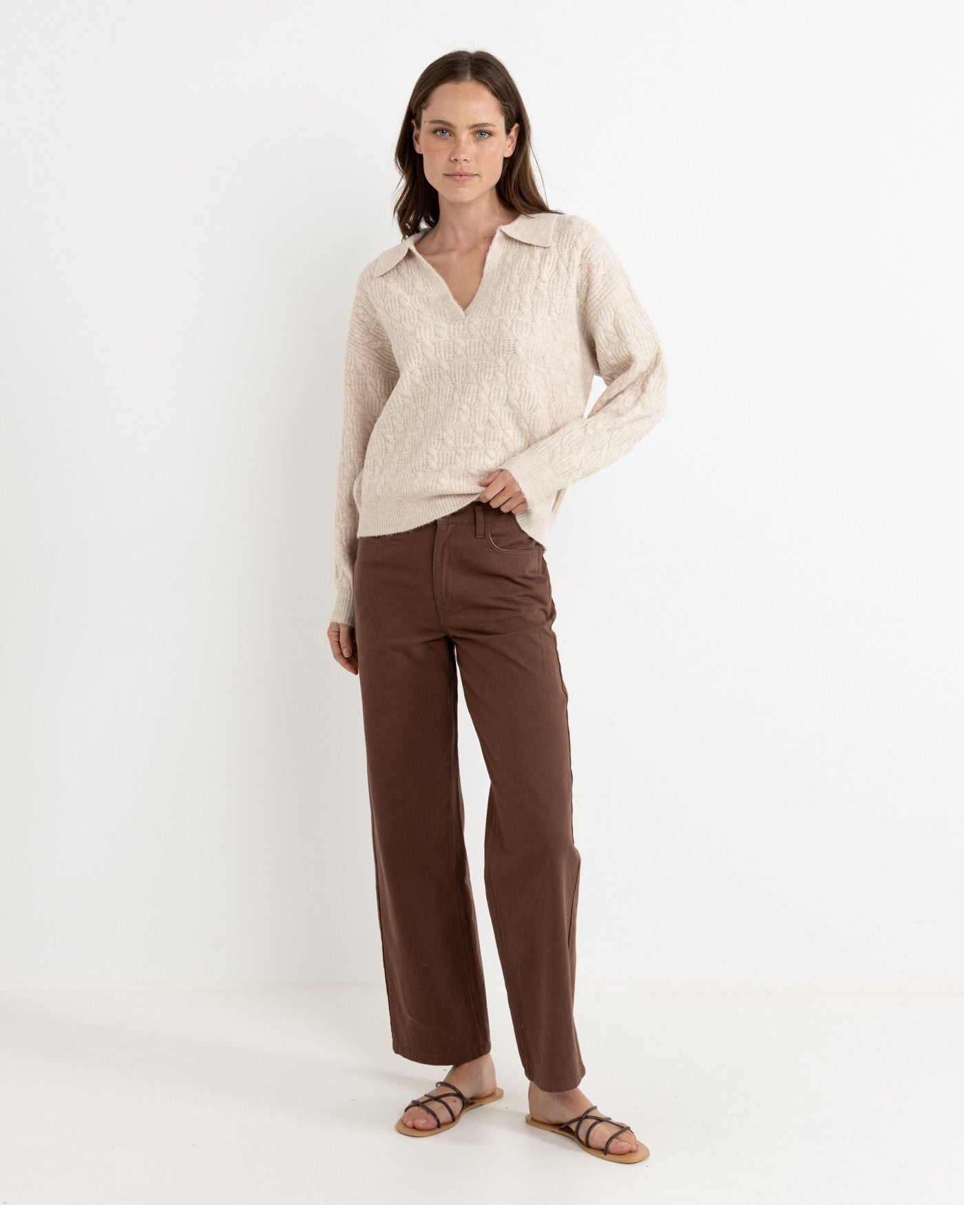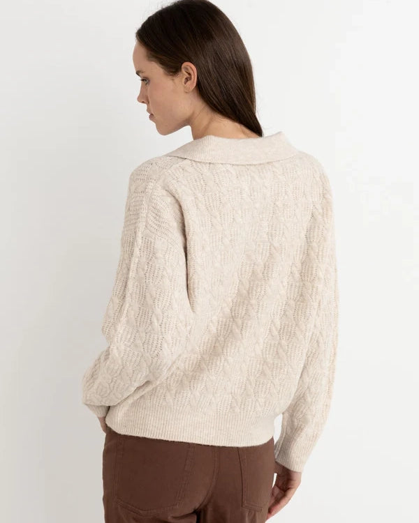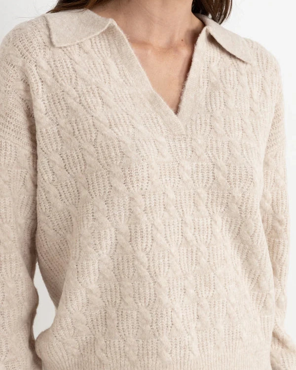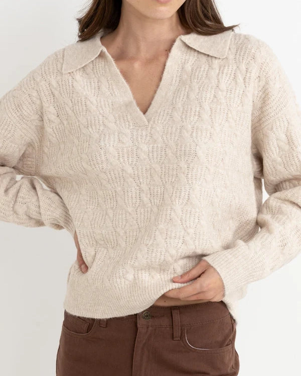 Lexie V-neck Jumper från Rhythm är en kabelstickad v-ringad tröja som kommer i en avslappnad passform.