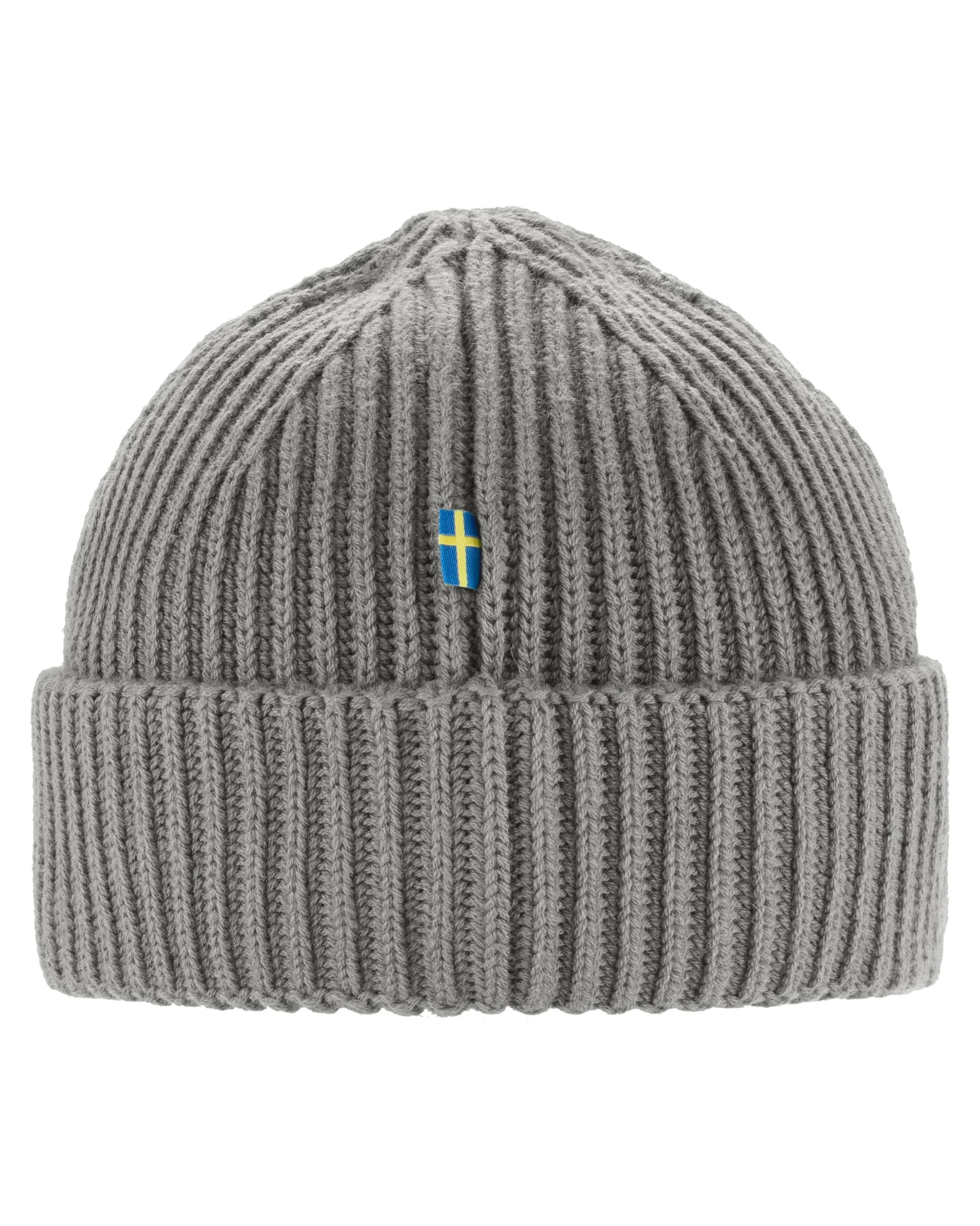 Ribbstickad mössa från Fjällräven, tillverkad i en blanding av ekologisk bomull och ull.