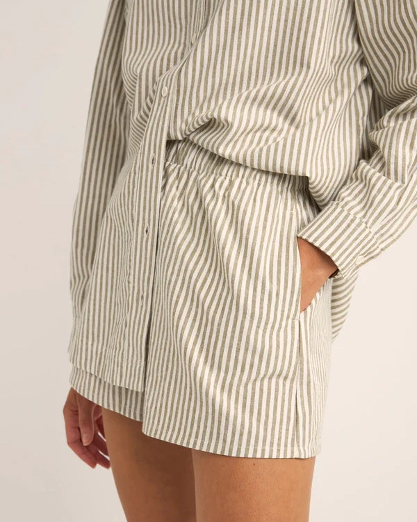 Valley Stripe Shorts from Rhythm, can be matched with the Valley Stripe shirt for a complete set, made of 100% cotton, have an elastic waist and a relaxed fit.