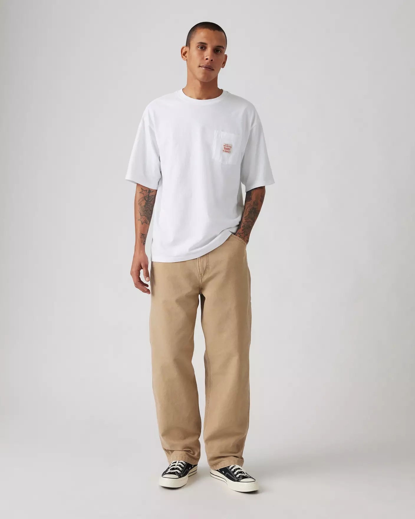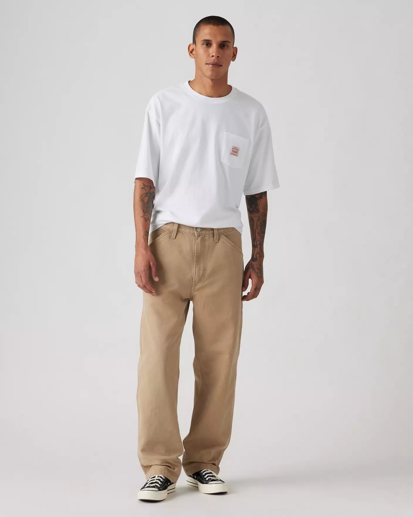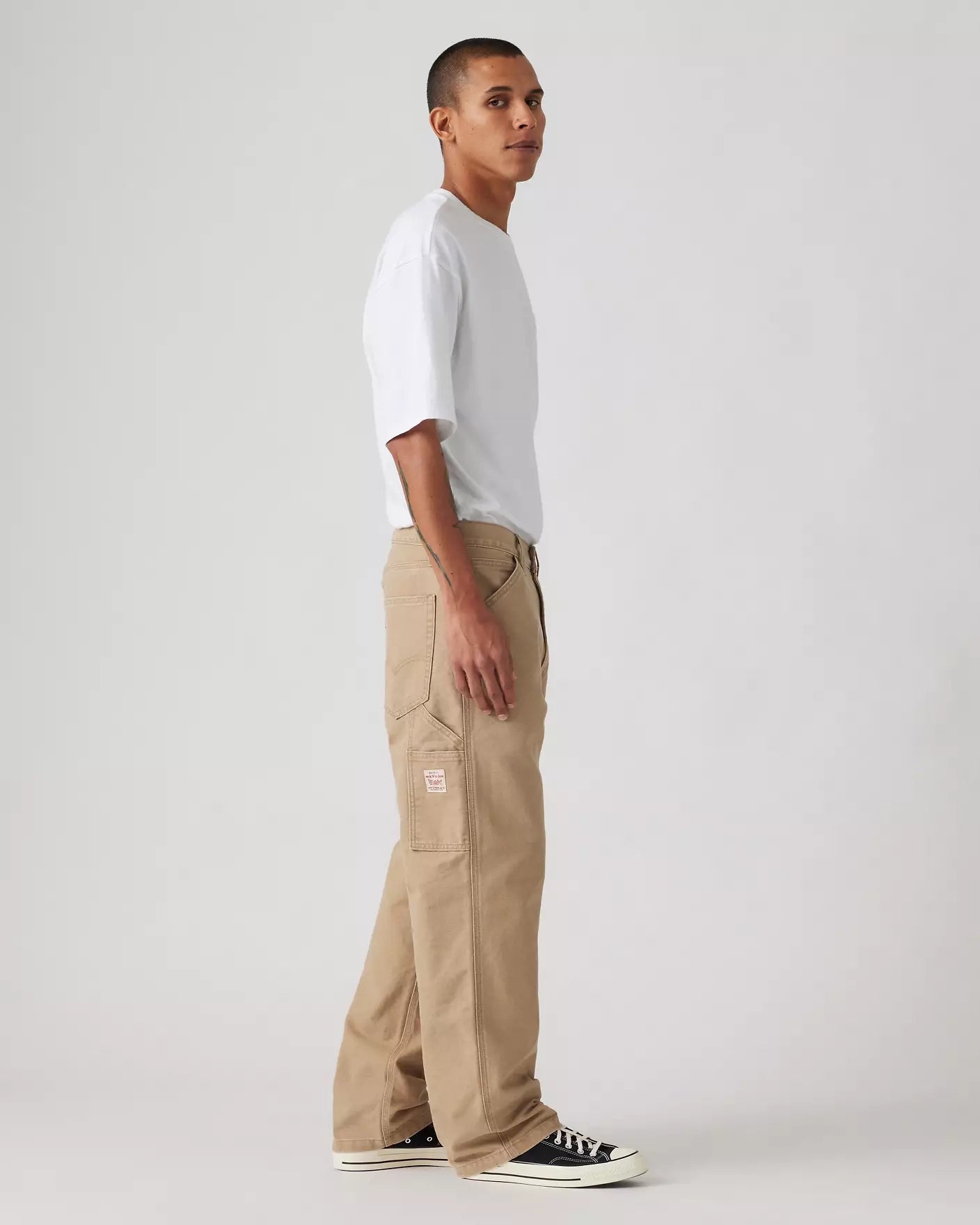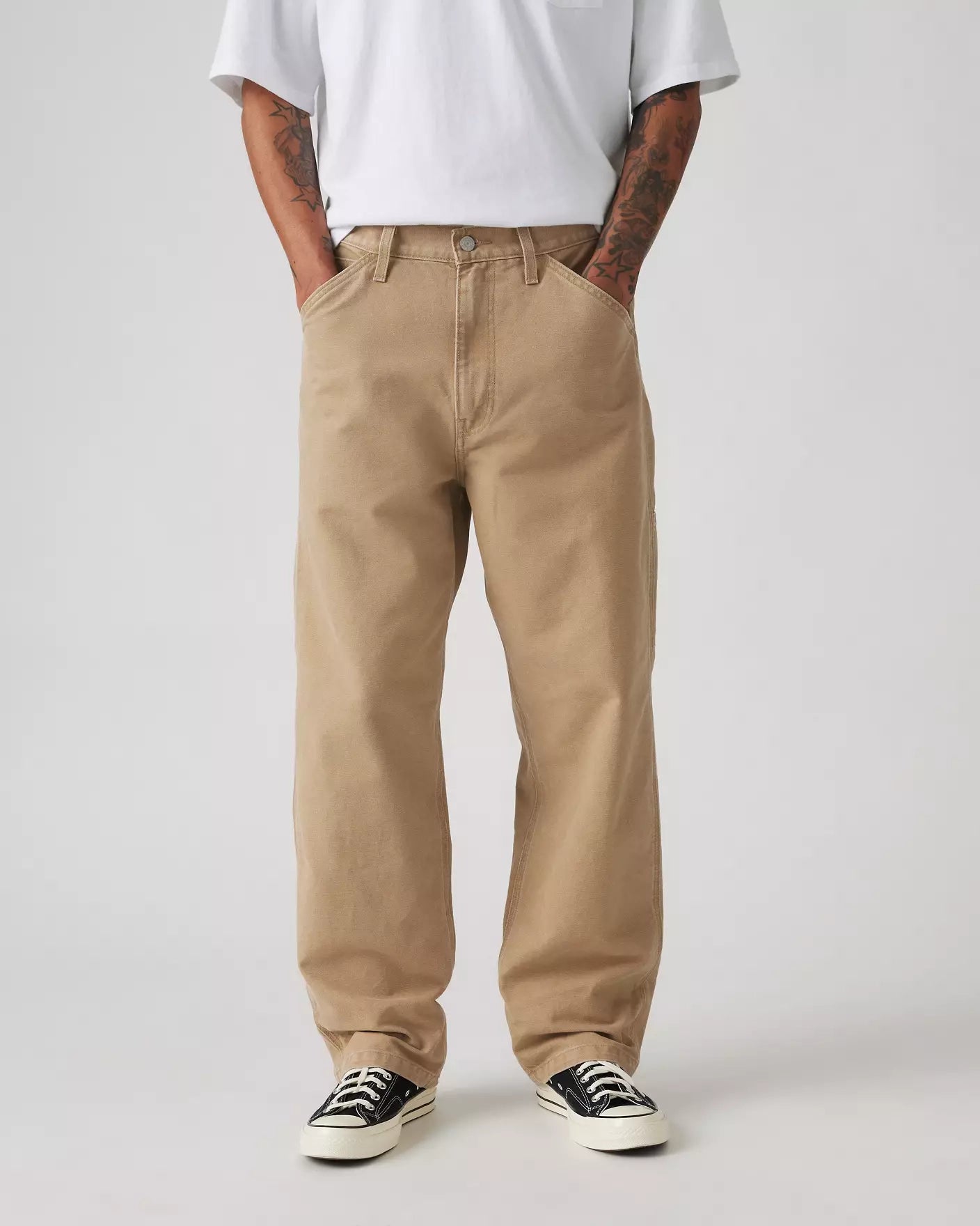 568 Loose Strt Carpenter jeans från Levis, tillverkad i 100% canvas bomull, byxan har en avslappnad rak passform och pryds med verktygsfickor.