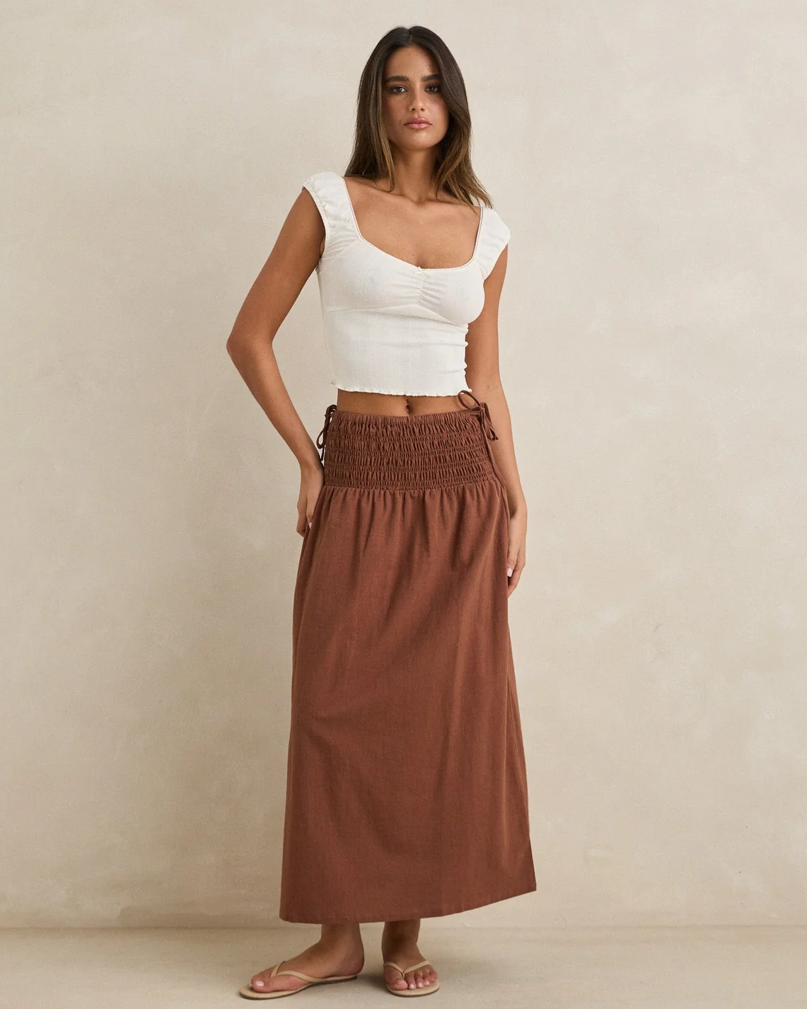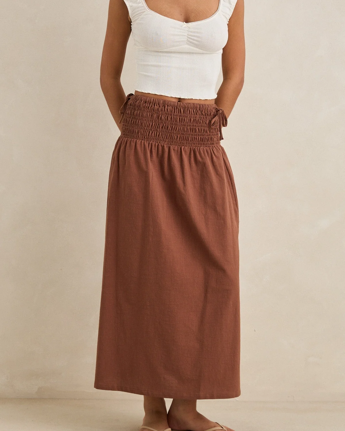 Alana Tie Maxi Skirt - Chocolate