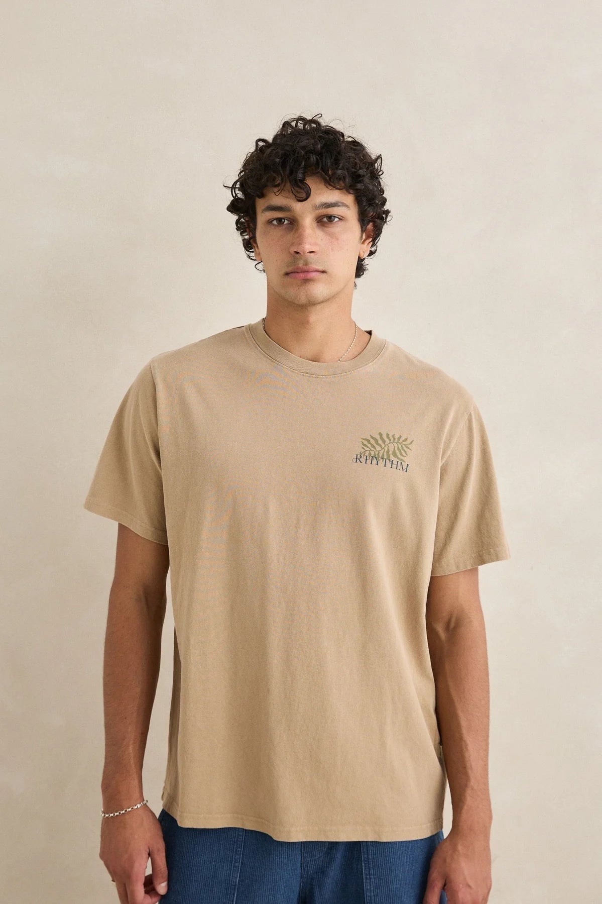 Botanical Vintage SS T-shirt från Rhythm är en garment dyed tee med ett "Sound of change" screentryck baktill och Rhythm logo framtill.