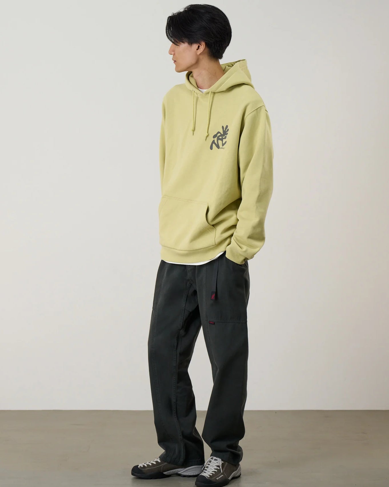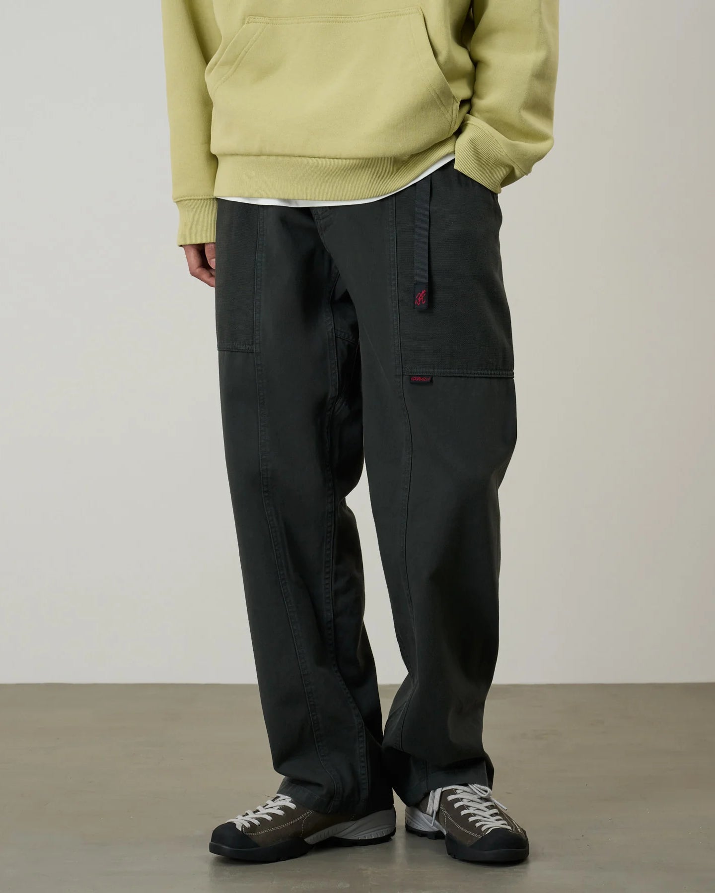 Gadget pant från Gramicci är en byxa utformad och designad på tidigt 90 tal för att rymma prylar som passar en modern livsstil, samtidigt som de behåller den funktionalitet vid klättring som är varumärkets grund. Byxorna utmärks av stora fickor som sträcker sig från fram- till baksidan och har en bekväm ledig silhuett. Slitstarka fickorna gjorda i canvas, elasisk midja samt vävt sidobälte som kan bära nycklar och flaskor.