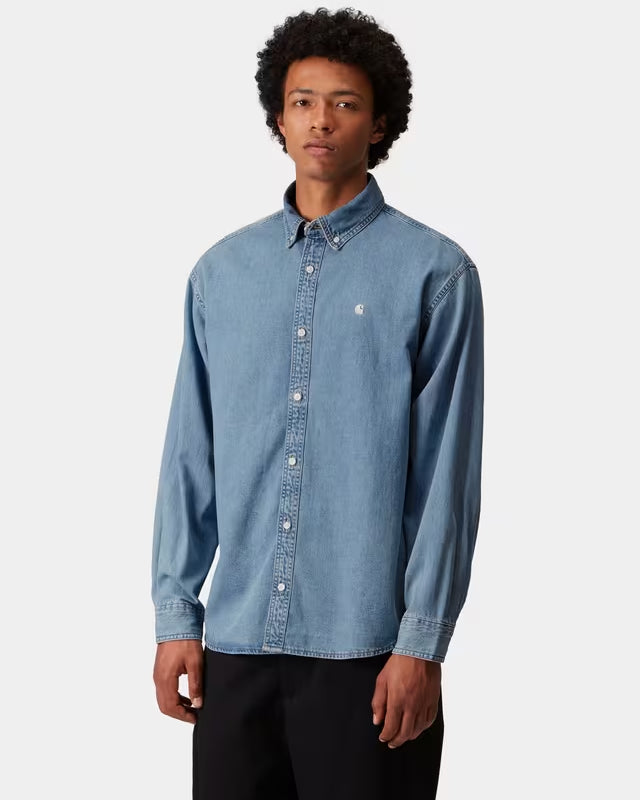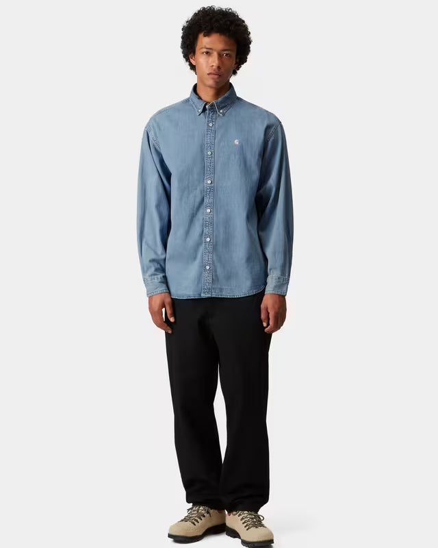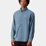 Lucas shirt från Carhartt WIP är en denim skjorta som kommer i en avslappnad passform, pryds med broderad "C" logotype och har buttondown krage.
