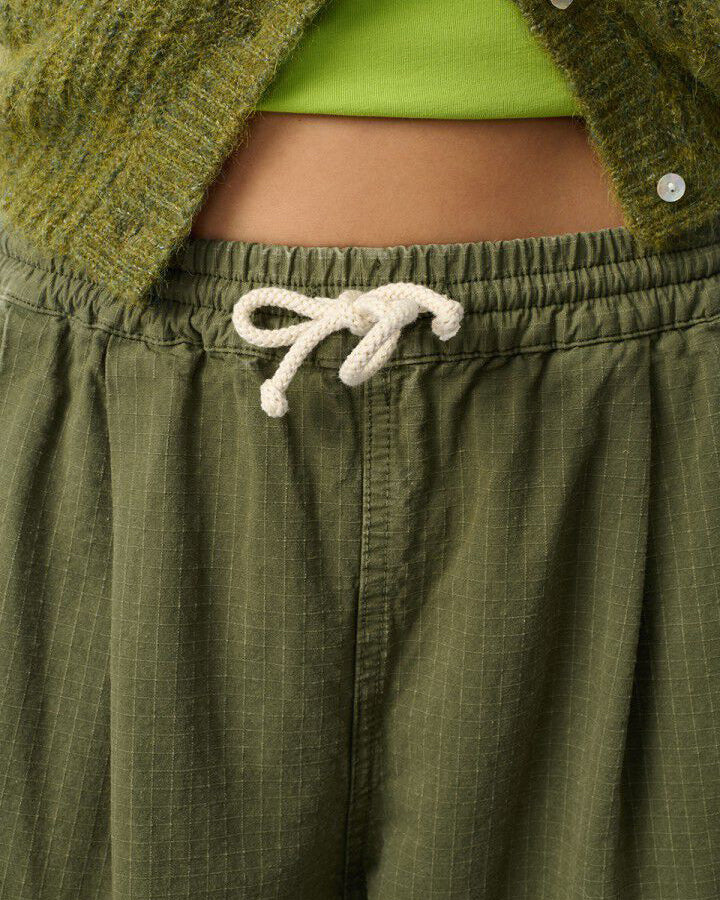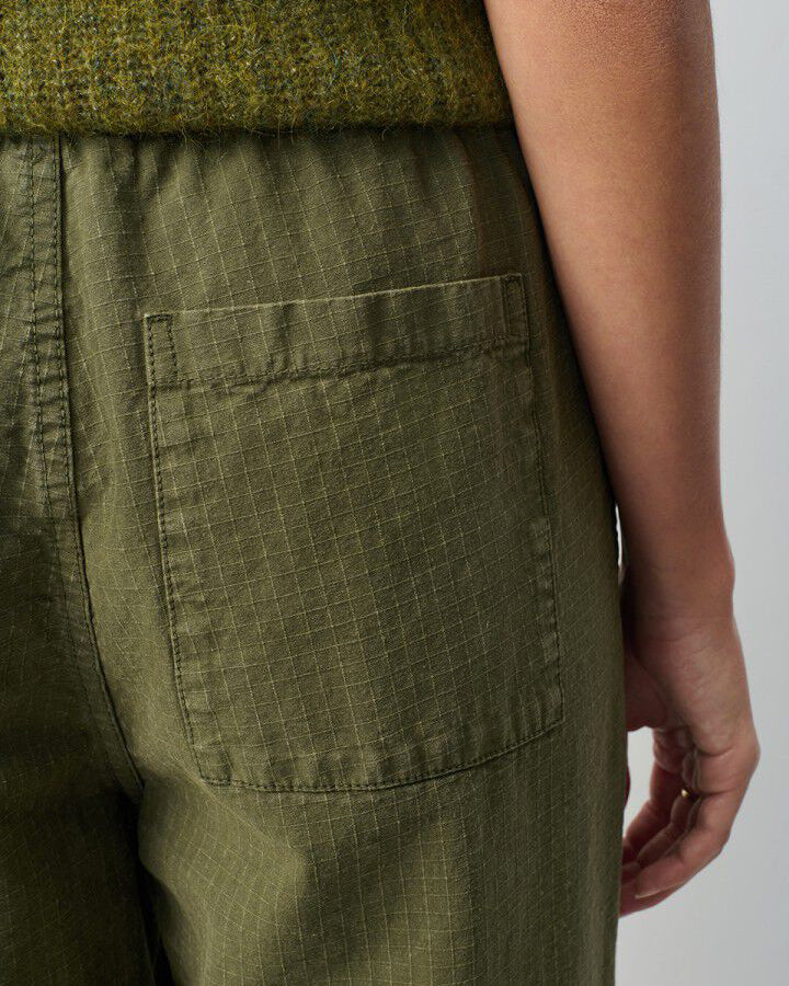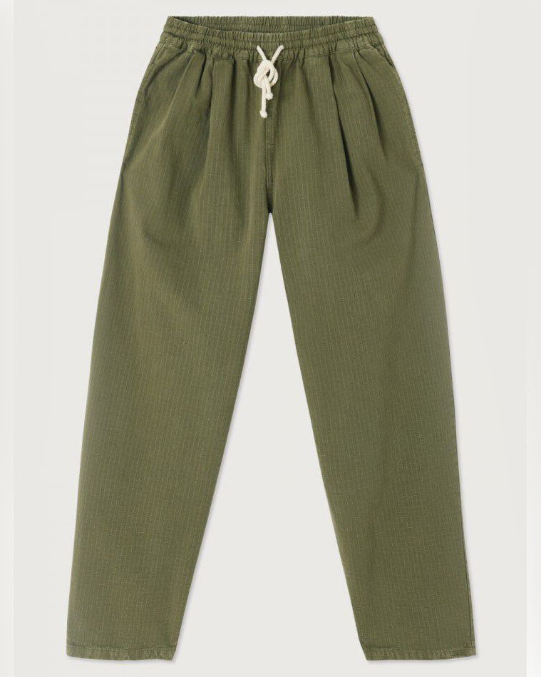 Rygbay byxan från American Vintage är tillverkad i 100% organisk bomull och har avslappnad passform samt elastisk i midja.
