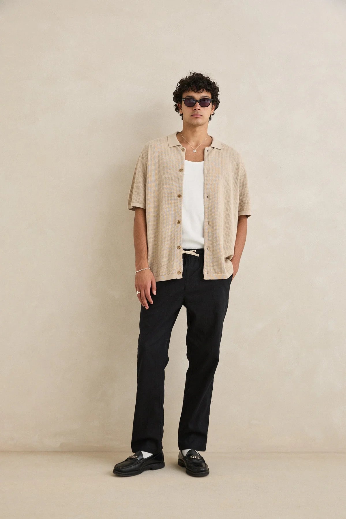 Textured Knit SS Shirt - Stone