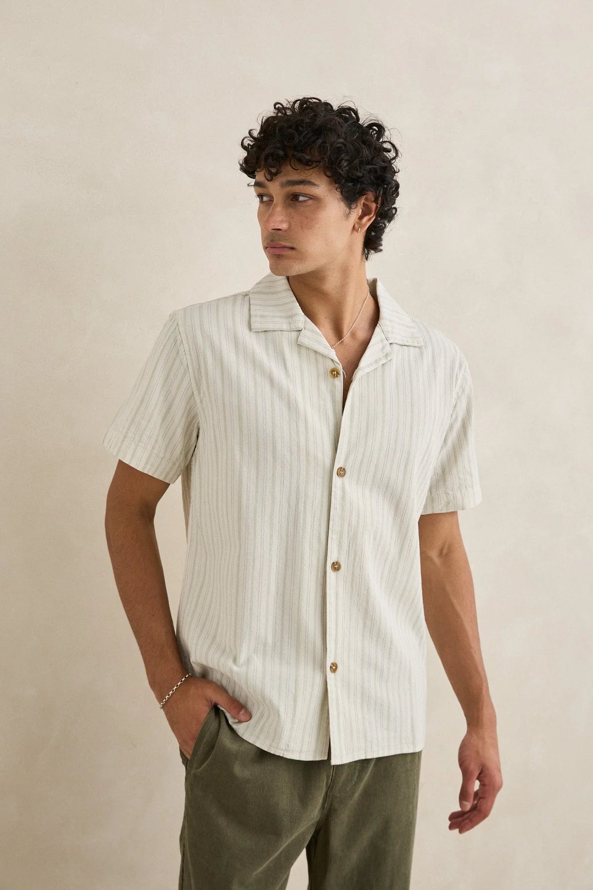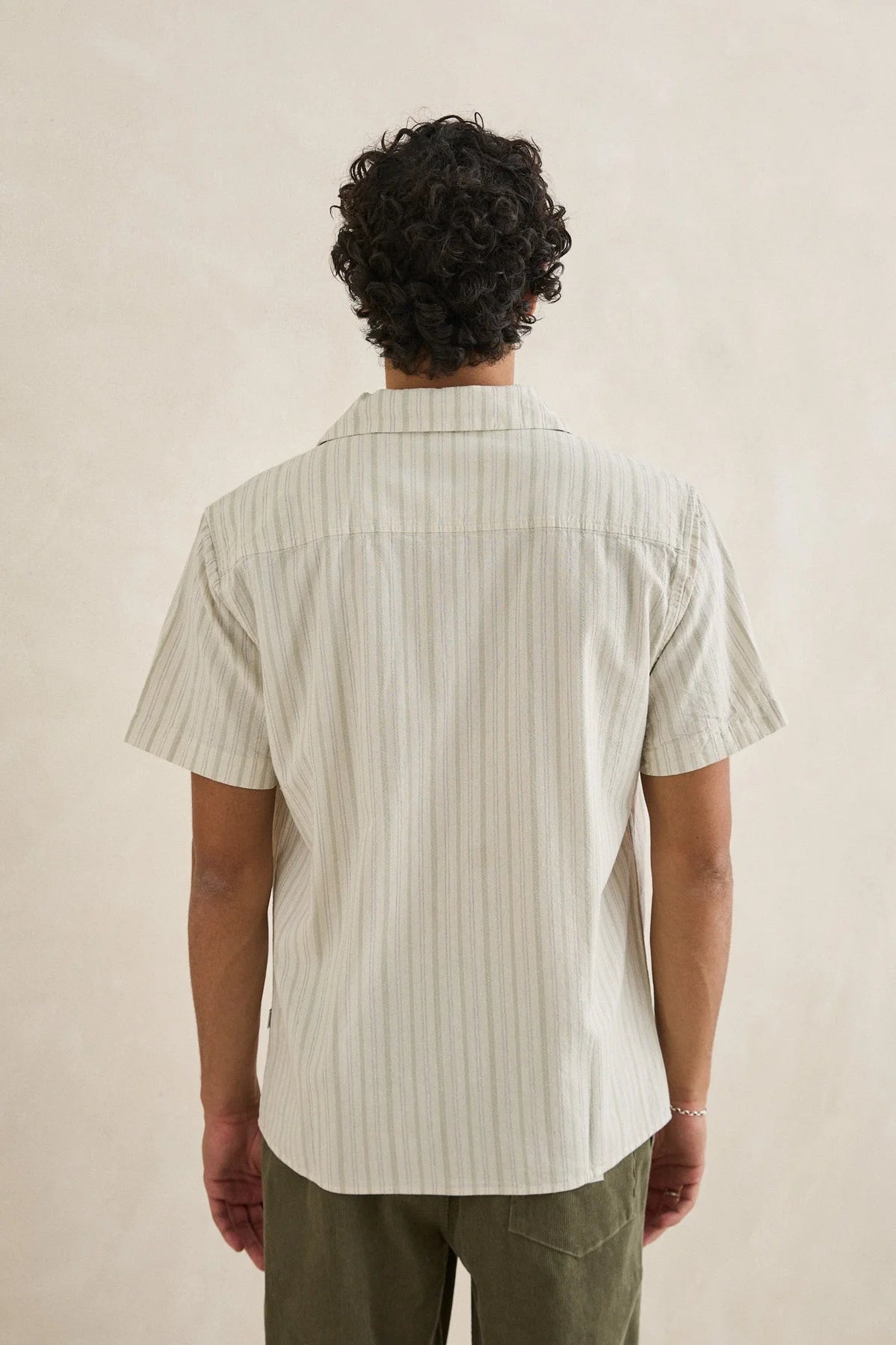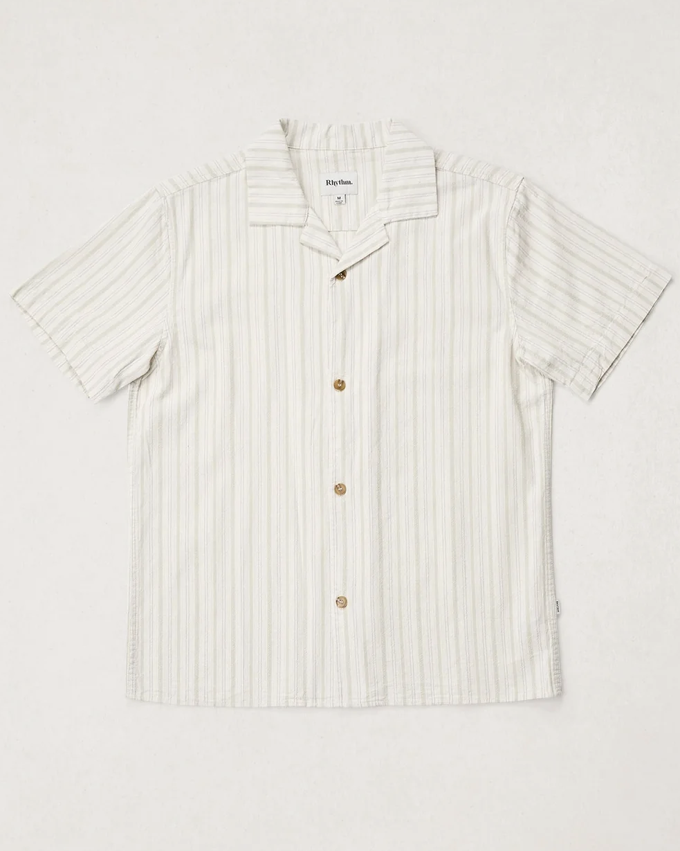 Vacation Stripe SS Shirt från Rhythm har en kubansk krage, tvättad för en vintage känsla, tillverkad i 100% bomull