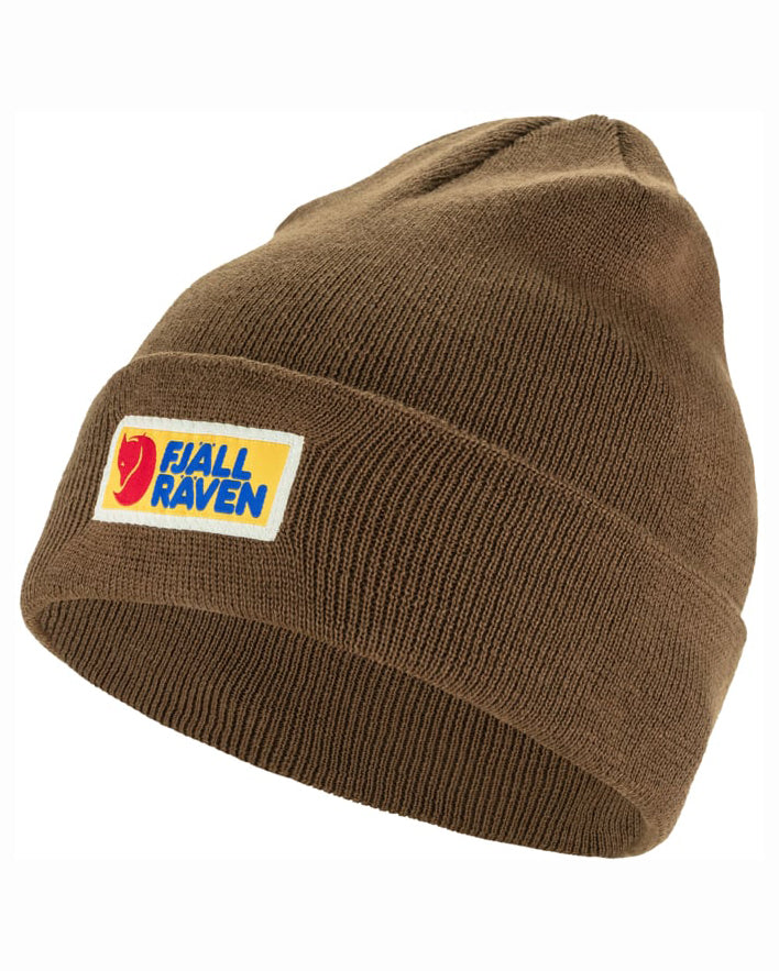 Stickad mössa ifrån Fjällräven, tillverkad i återvunnen polyester och pryds med logotype framtill.