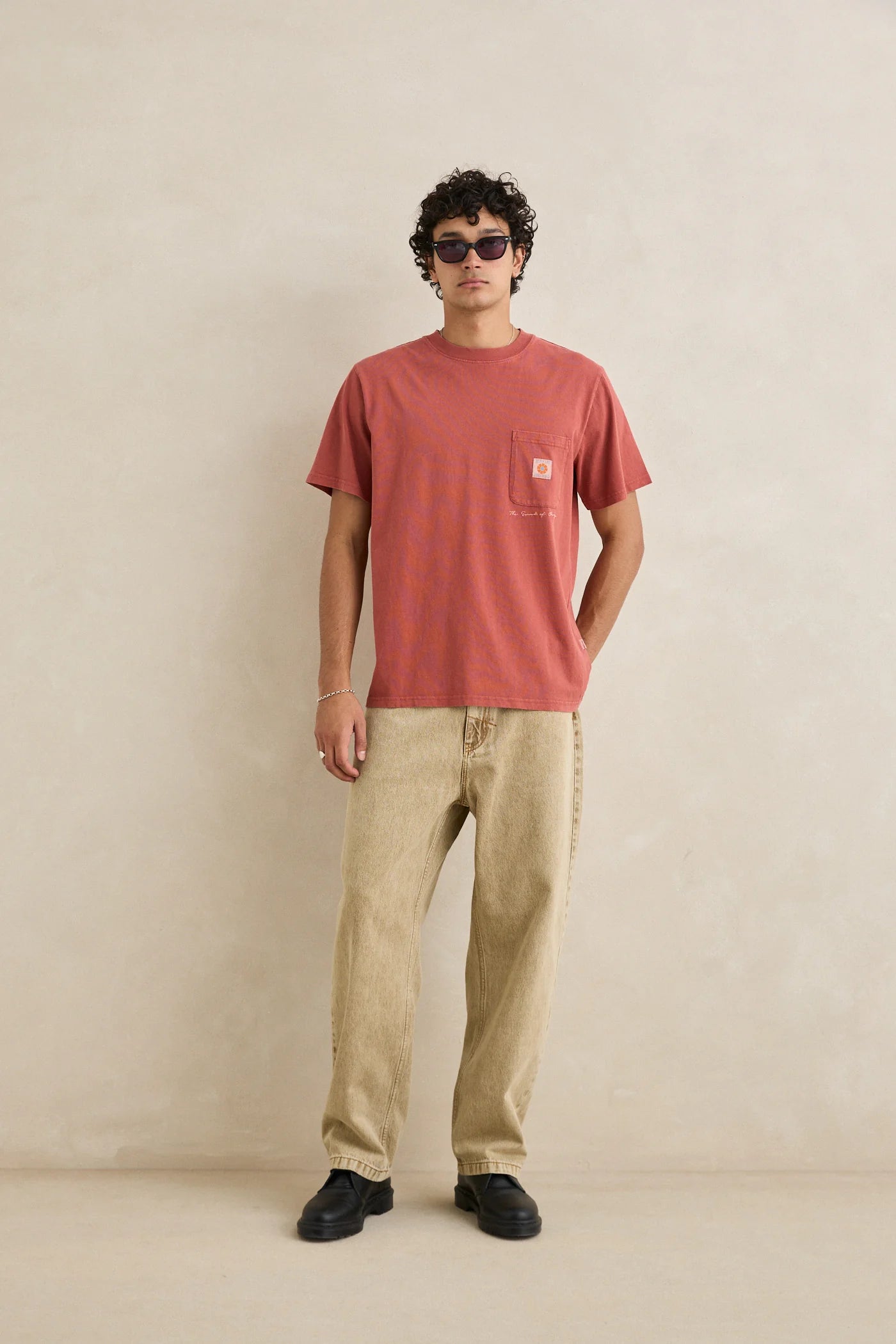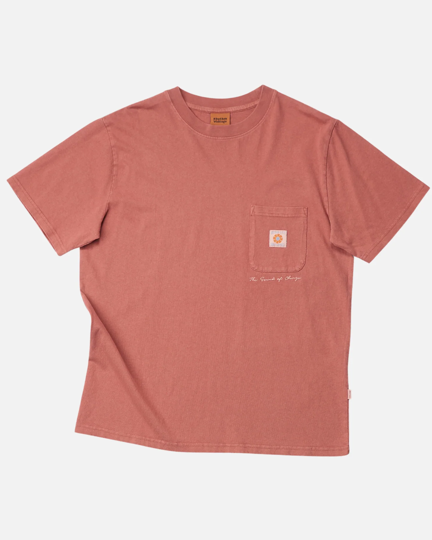 Vintage Pocket SS T-shirt från Rhythm, en stilrent tee som kommer med ett tvättat utseende, pryds med bröstficka med "Rhythm" patch.