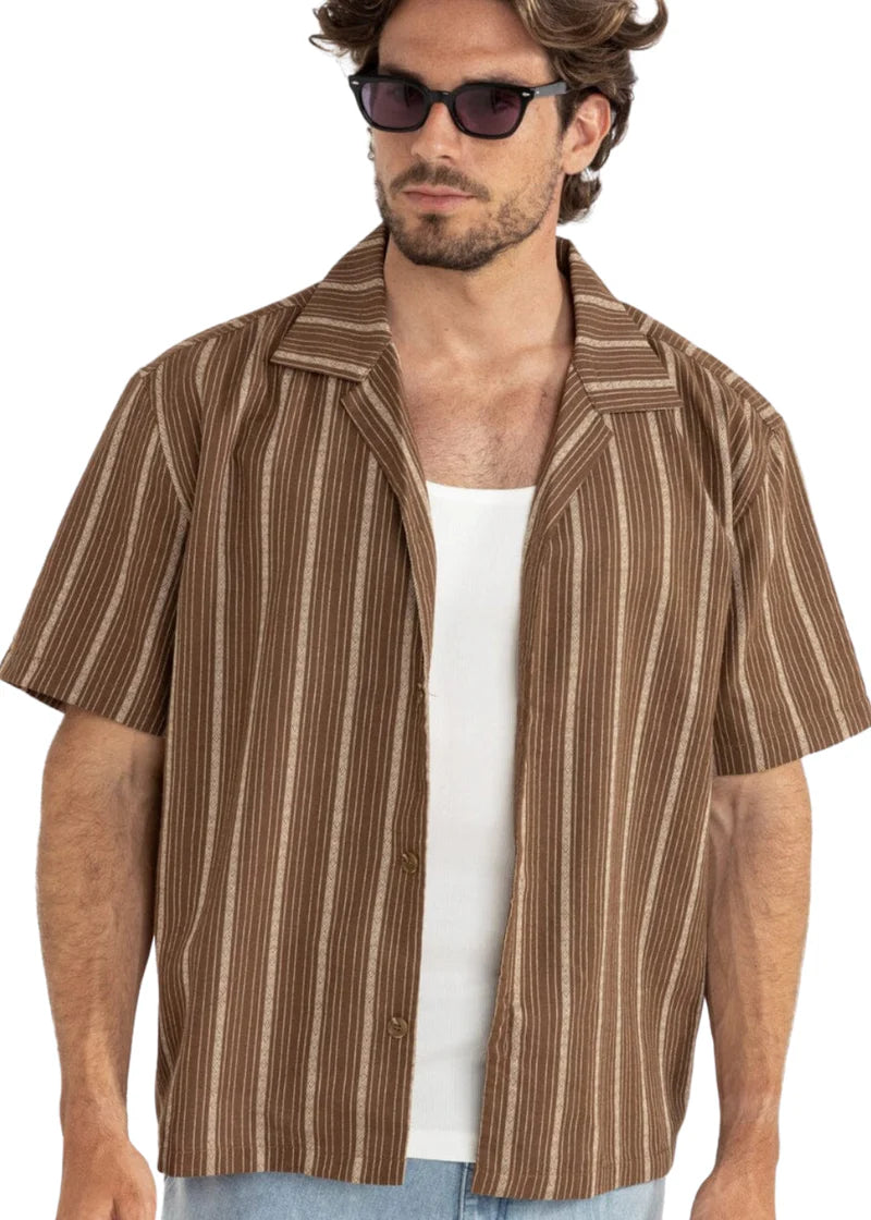 West Winds Stripe SS Shirt från Rhythm är en laid-back somrig skjorta med kubansk krage, kommer med avslappnad passform och croppad längd.