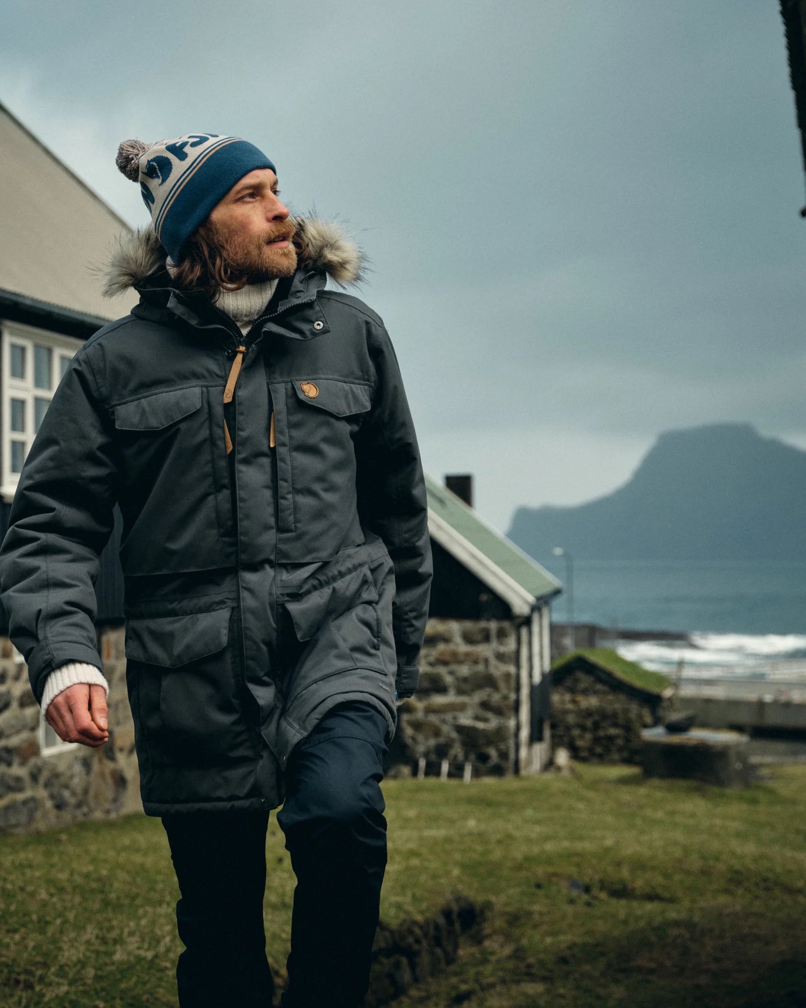 Stickad mössa från Fjällräven i återvunne polyester.