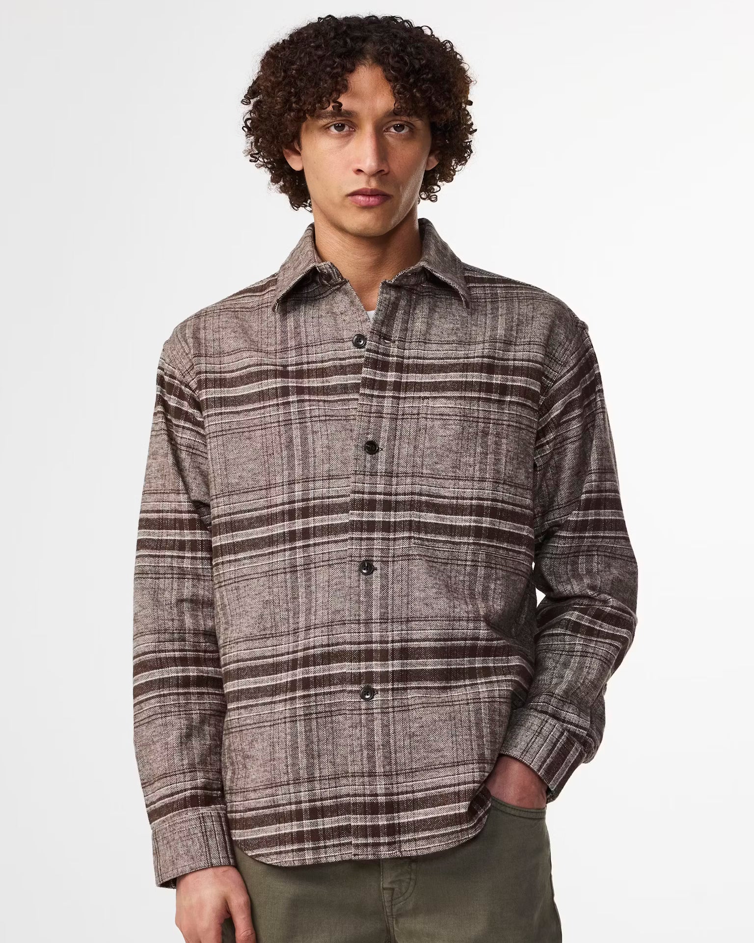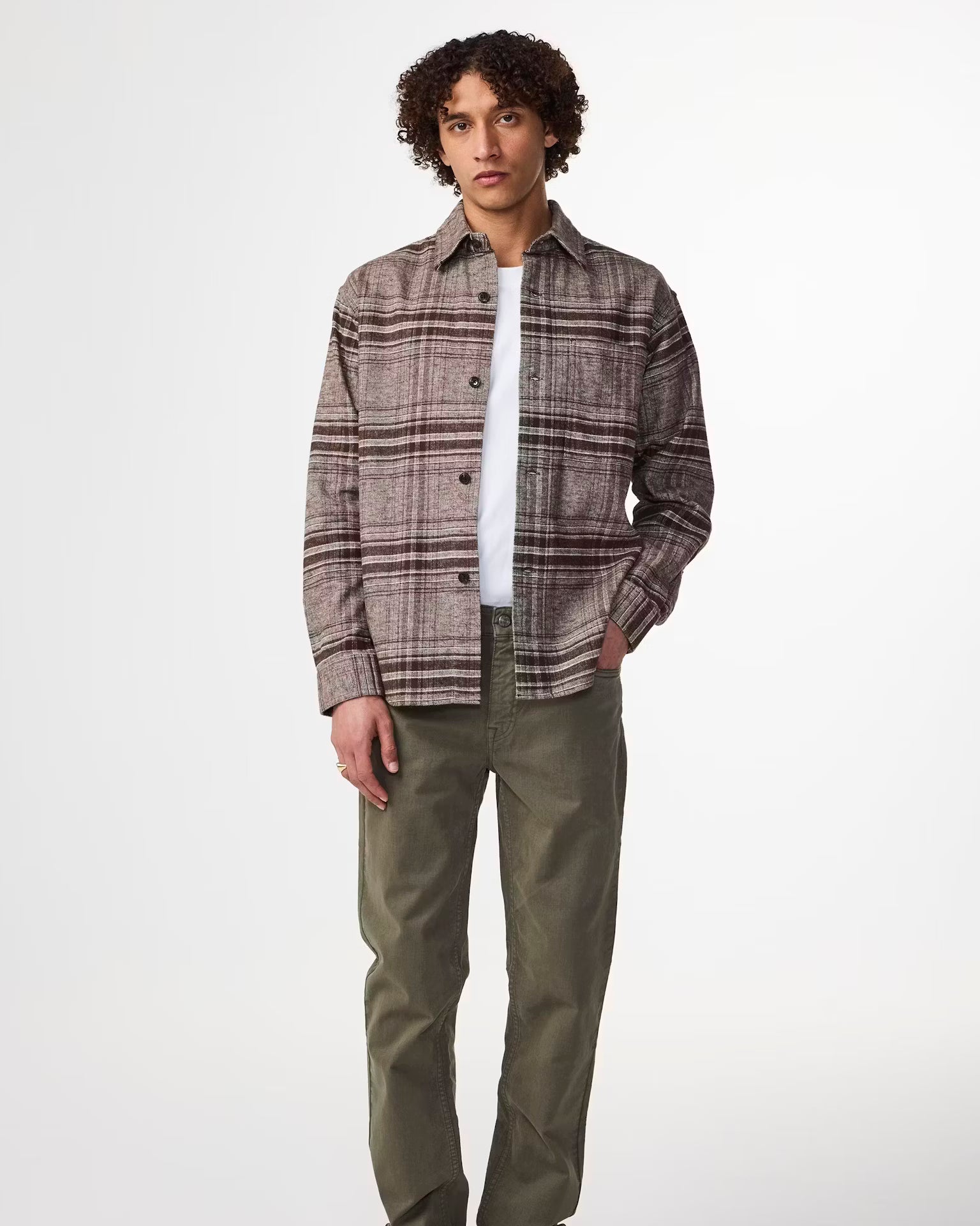 Adwin 5292 från NN07 med borstad flanell tillverkad av ekologisk bomull, skjortan har en boxy avslappnad passform.