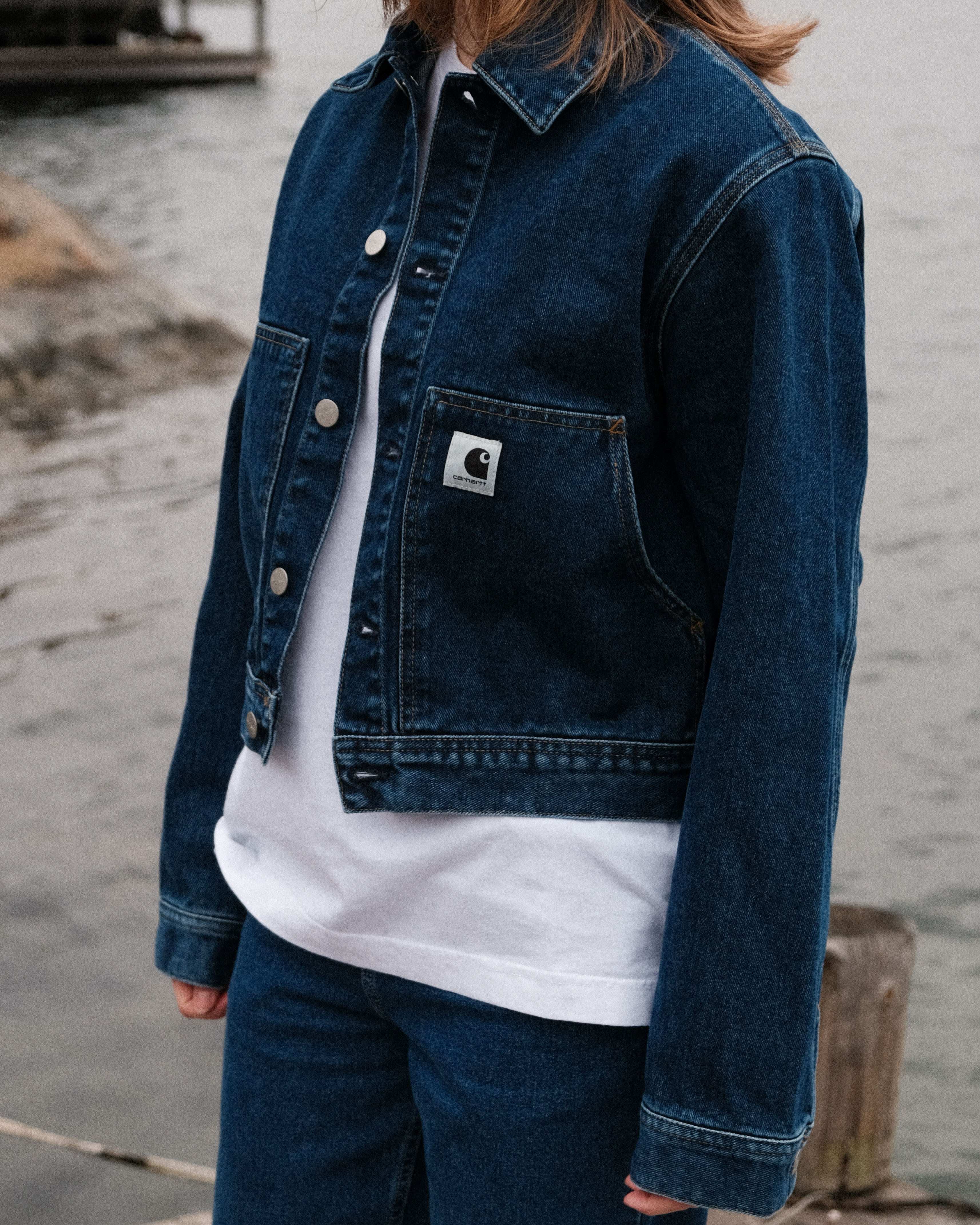 Arch jeansjackan Carhart WIP är tillverkad i 100% organisk bomull och har en croppad längd.
